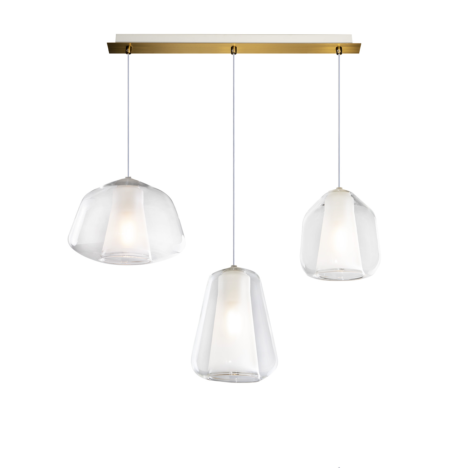 Sospensione Contemp. Rett. Double Skin Metallo Ottone Vetro Mix Trasp. 3 Luci