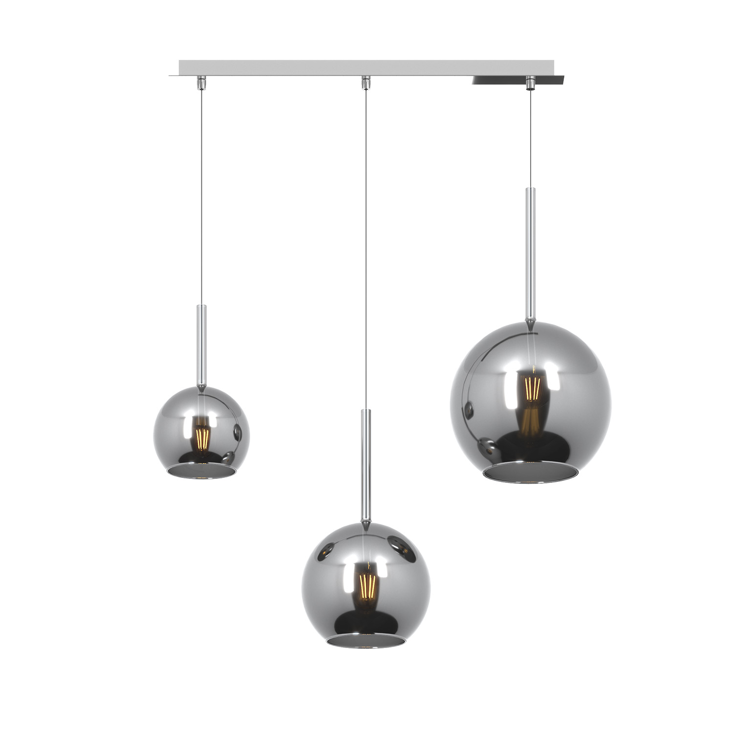 Sospensione 3 luci dal rosone lineare e rettangolare con struttura in metallo finitura cromo e da 3 vetri tutti differenti nelle dimensioni colore cromo.. Le finiture dei vetri cromo, rame, oro e ambra sono trattamenti superficiali che riducono solo parzialmente l'emissione luminosa. La finitura trasparente può essere naturalmente abbinata alle altre. Le strutture in metallo sono disponibili nelle finiture cromo, bianco e ottone satinato, con il diffusore in vetro disponibile in tutte le finiture esistenti.Possibilità di creare una composizione componibile in base ai componenti della sospensione scelti.Questo articolo è disponibile in diverse finiture e/o dimensioni. E' possibile indicarlo nell'apposito campo NOTE presente in conclusione di ordine oppure contattarci dopo aver effettuato l'ordine.