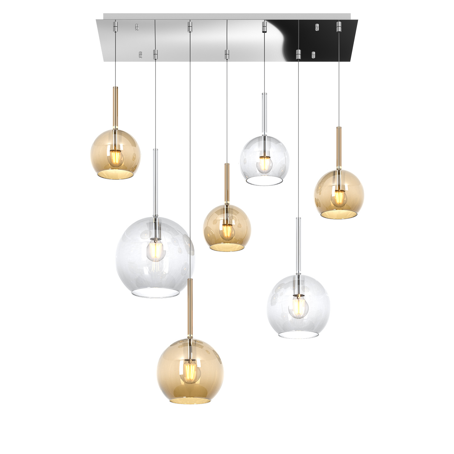 Sospensione Contemp. Rett. Future Metallo Cromo Vetro Trasp. E Ambra 7 Luci E27