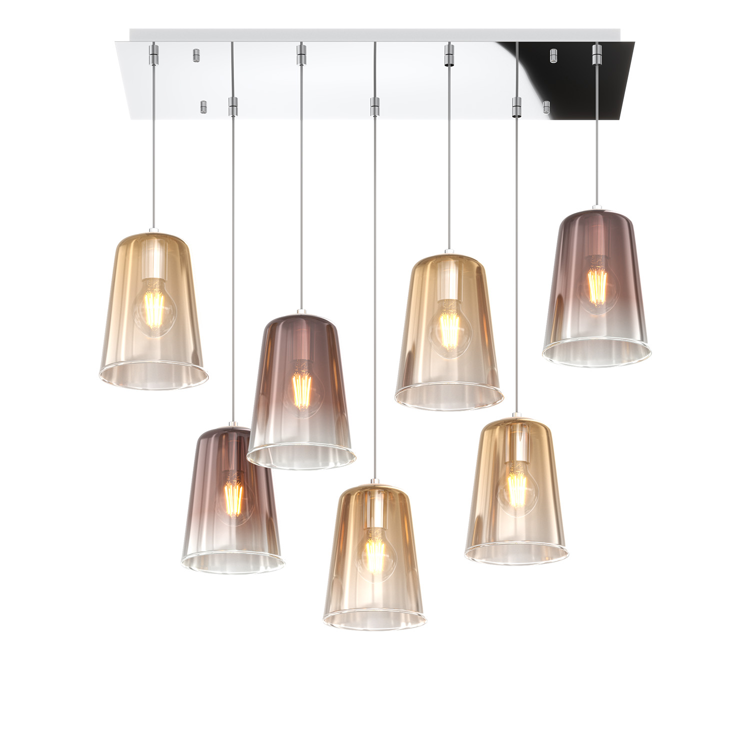 Sospensione Contemporanea Rett. Shaded Metallo Ambra Vetro Cromo 7 Luci E27