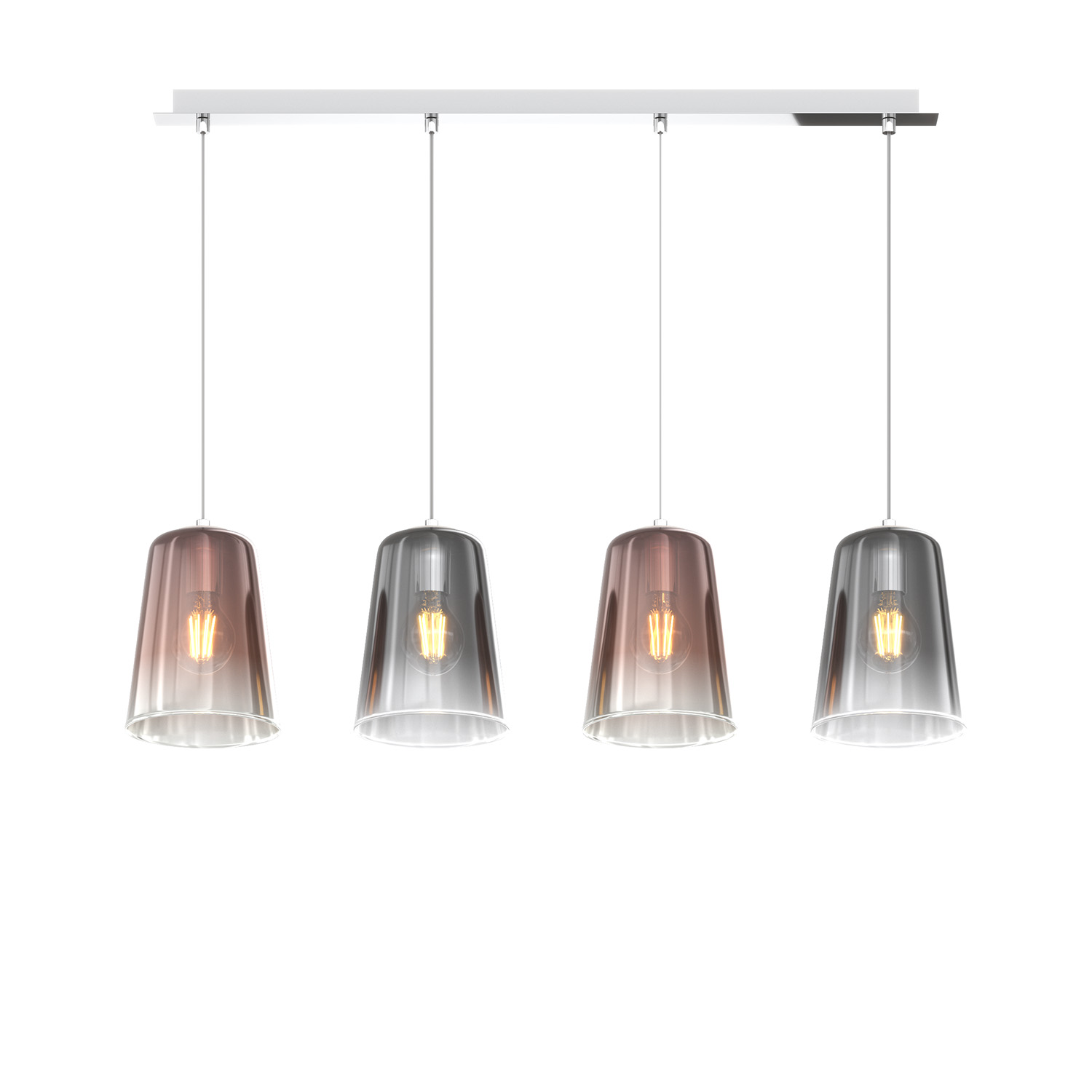 Sospensione Contemporanea Rett. Shaded Metallo E Vetro Cromo 4 Luci E27