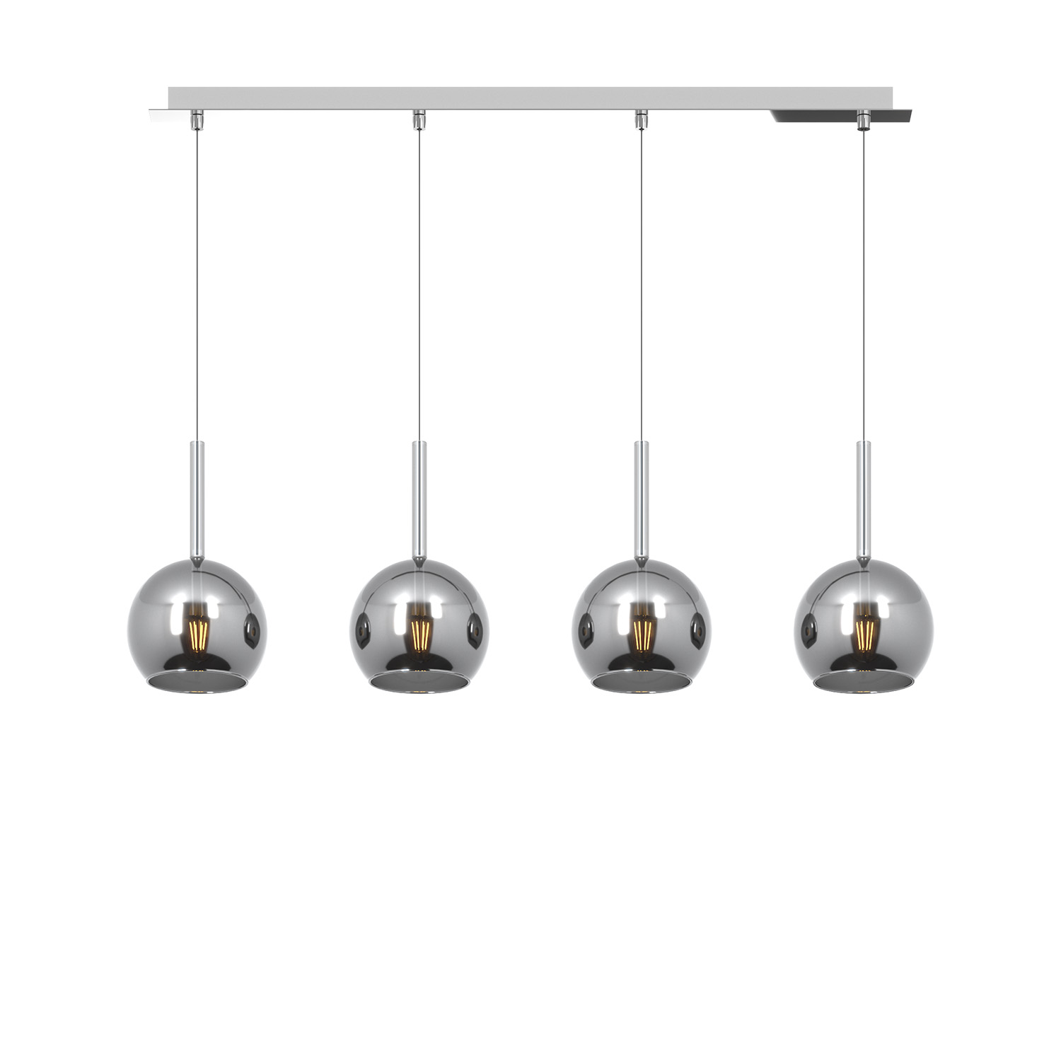 Sospensione 4 luci dal rosone rettangolare con struttura in metallo finitura cromo e da 4 vetri di uguale dimensione colore cromo.. Le finiture dei vetri cromo, rame, oro e ambra sono trattamenti superficiali che riducono solo parzialmente l'emissione luminosa. La finitura trasparente può essere naturalmente abbinata alle altre. Le strutture in metallo sono disponibili nelle finiture cromo, bianco e ottone satinato, con il diffusore in vetro disponibile in tutte le finiture esistenti.Possibilità di creare una composizione componibile in base ai componenti della sospensione scelti.Questo articolo è disponibile in diverse finiture e/o dimensioni. E' possibile indicarlo nell'apposito campo NOTE presente in conclusione di ordine oppure contattarci dopo aver effettuato l'ordine.