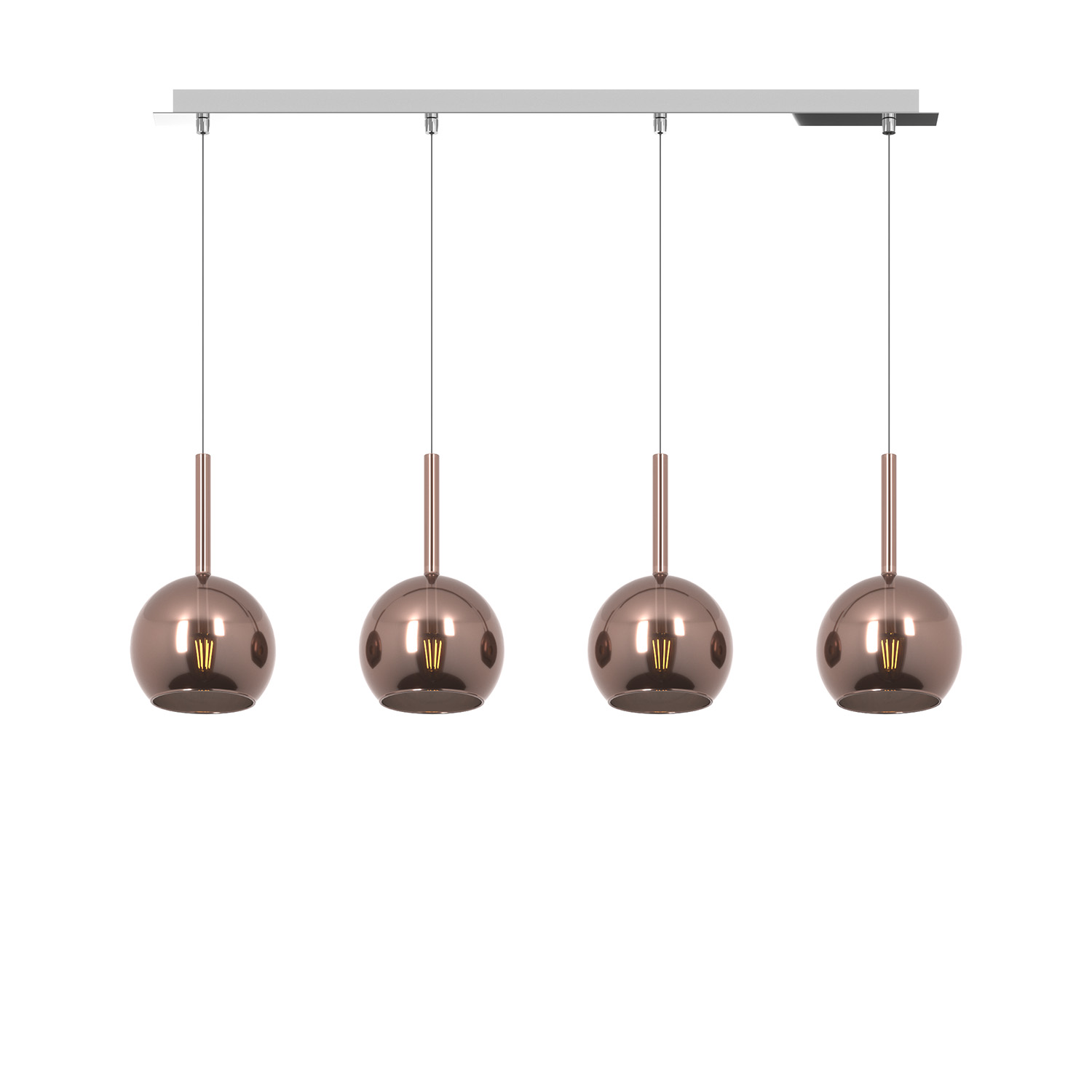 Sospensione 4 luci dal rosone rettangolare con struttura in metallo finitura cromo e da 4 vetri di uguale dimensione colore rame.. Le finiture dei vetri cromo, rame, oro e ambra sono trattamenti superficiali che riducono solo parzialmente l'emissione luminosa. La finitura trasparente può essere naturalmente abbinata alle altre. Le strutture in metallo sono disponibili nelle finiture cromo, bianco e ottone satinato, con il diffusore in vetro disponibile in tutte le finiture esistenti.Possibilità di creare una composizione componibile in base ai componenti della sospensione scelti.Questo articolo è disponibile in diverse finiture e/o dimensioni. E' possibile indicarlo nell'apposito campo NOTE presente in conclusione di ordine oppure contattarci dopo aver effettuato l'ordine.