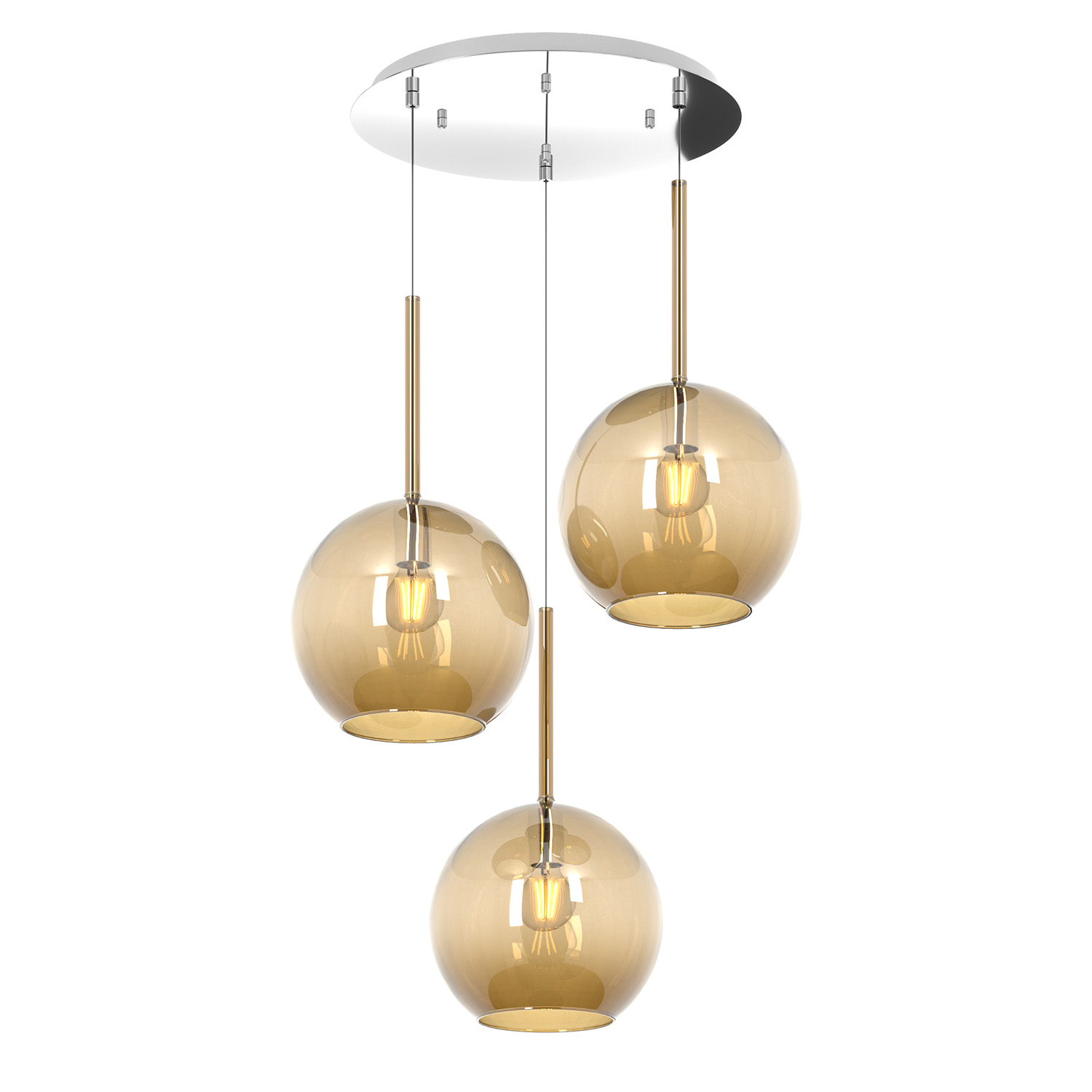 Sospensione 3 luci dal rosone tondo con struttura in metallo finitura cromo e da 3 vetri grandi di uguale dimensione colore ambra.. Le finiture dei vetri cromo, rame, oro e ambra sono trattamenti superficiali che riducono solo parzialmente l'emissione luminosa. La finitura trasparente può essere naturalmente abbinata alle altre. Le strutture in metallo sono disponibili nelle finiture cromo, bianco e ottone satinato, con il diffusore in vetro disponibile in tutte le finiture esistenti.Possibilità di creare una composizione componibile in base ai componenti della sospensione scelti.Questo articolo è disponibile in diverse finiture e/o dimensioni. E' possibile indicarlo nell'apposito campo NOTE presente in conclusione di ordine oppure contattarci dopo aver effettuato l'ordine.