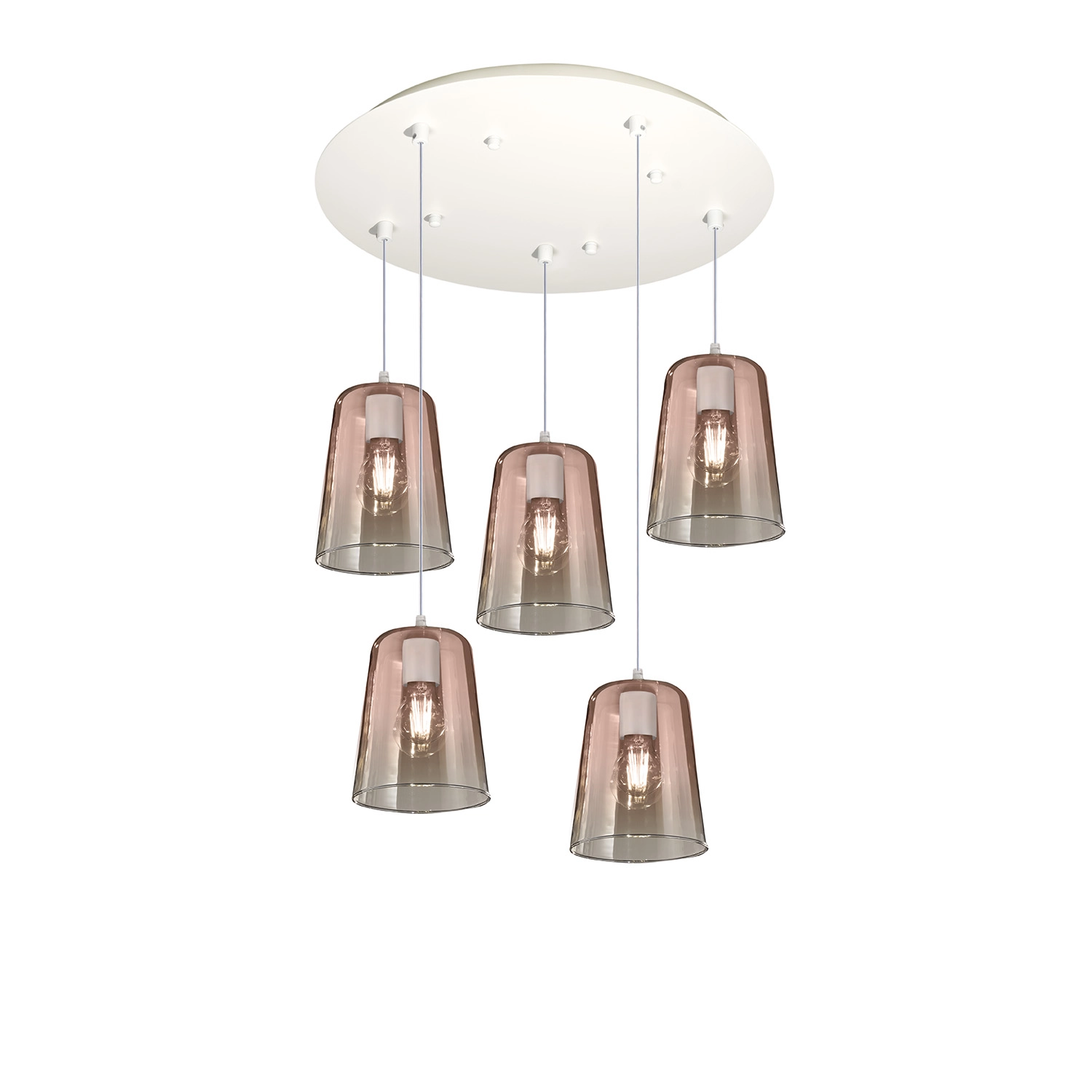 Sospensione Contemp. Rosone Tondo Shaded Metallo Bianco Vetro Rame 5 Luci E27