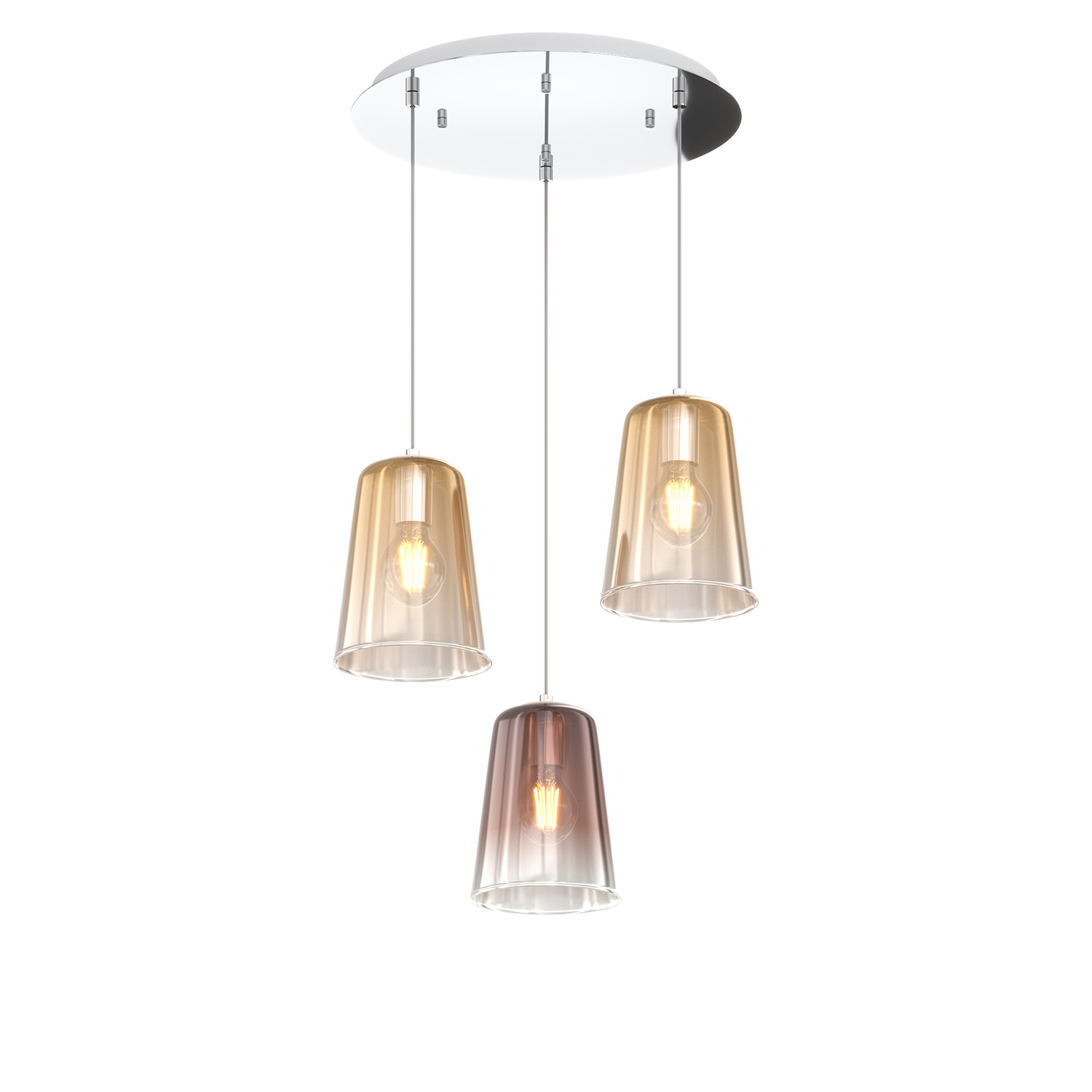 Sospensione Contemporanea Shaded Metallo Cromo Vetro Ambra 3 Luci E27