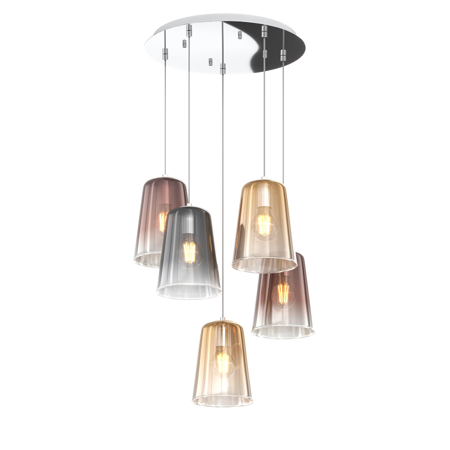 Sospensione Contemp. Rett. Shaded Metallo Cromo Vetro Multicolor 5 Luci E27