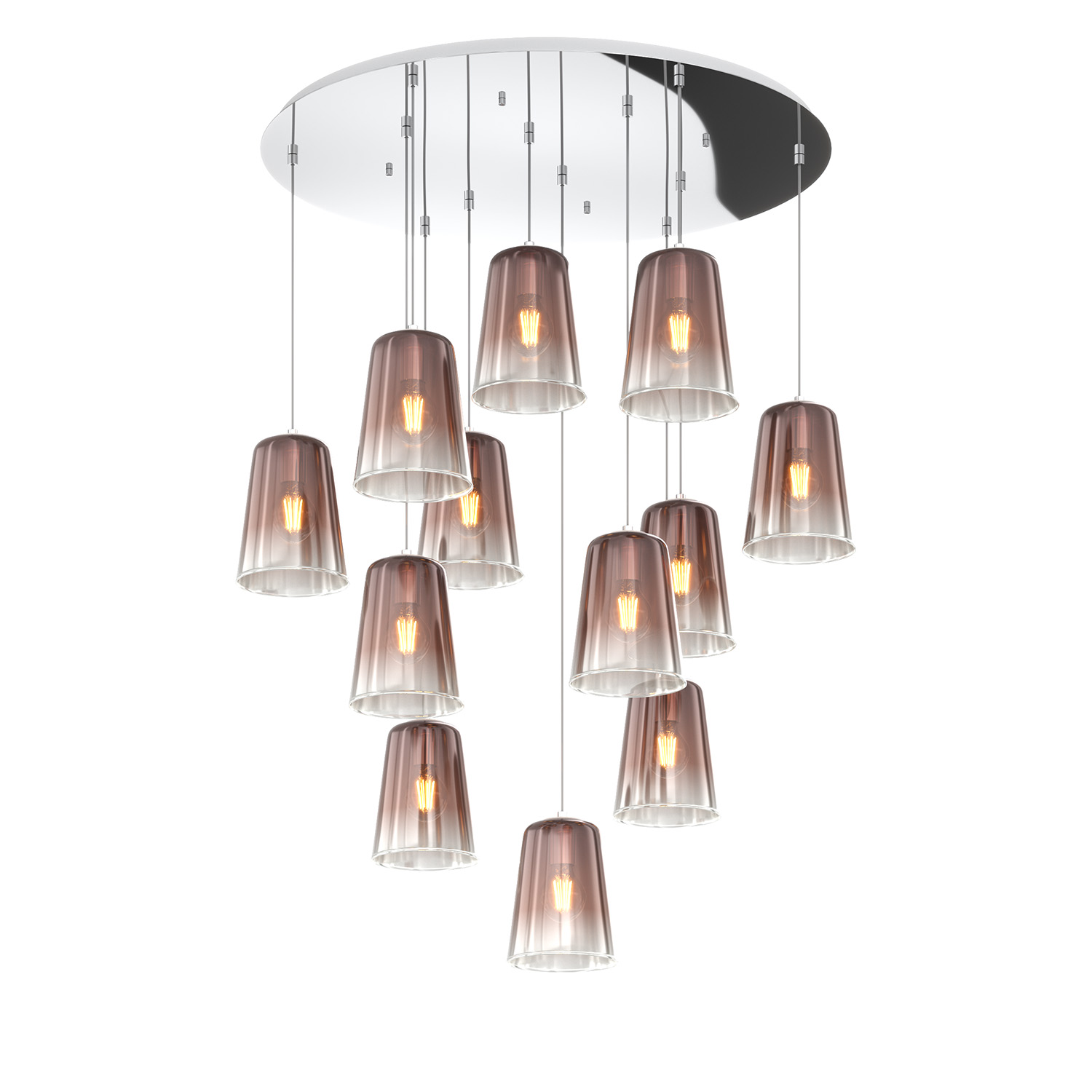 Sospensione Contemp. Rosone Tondo Shaded Metallo Cromo Vetro Rame 12 Luci E27