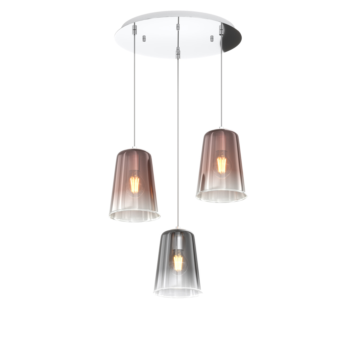 Sospensione Contemp. Rett. Shaded Metallo Cromo Vetro Rame E Cromo 3 Luci E27