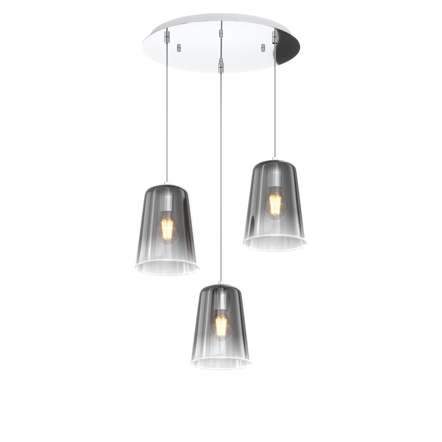 Sospensione Contemporanea Shaded Metallo E Vetro Cromo 3 Luci E27