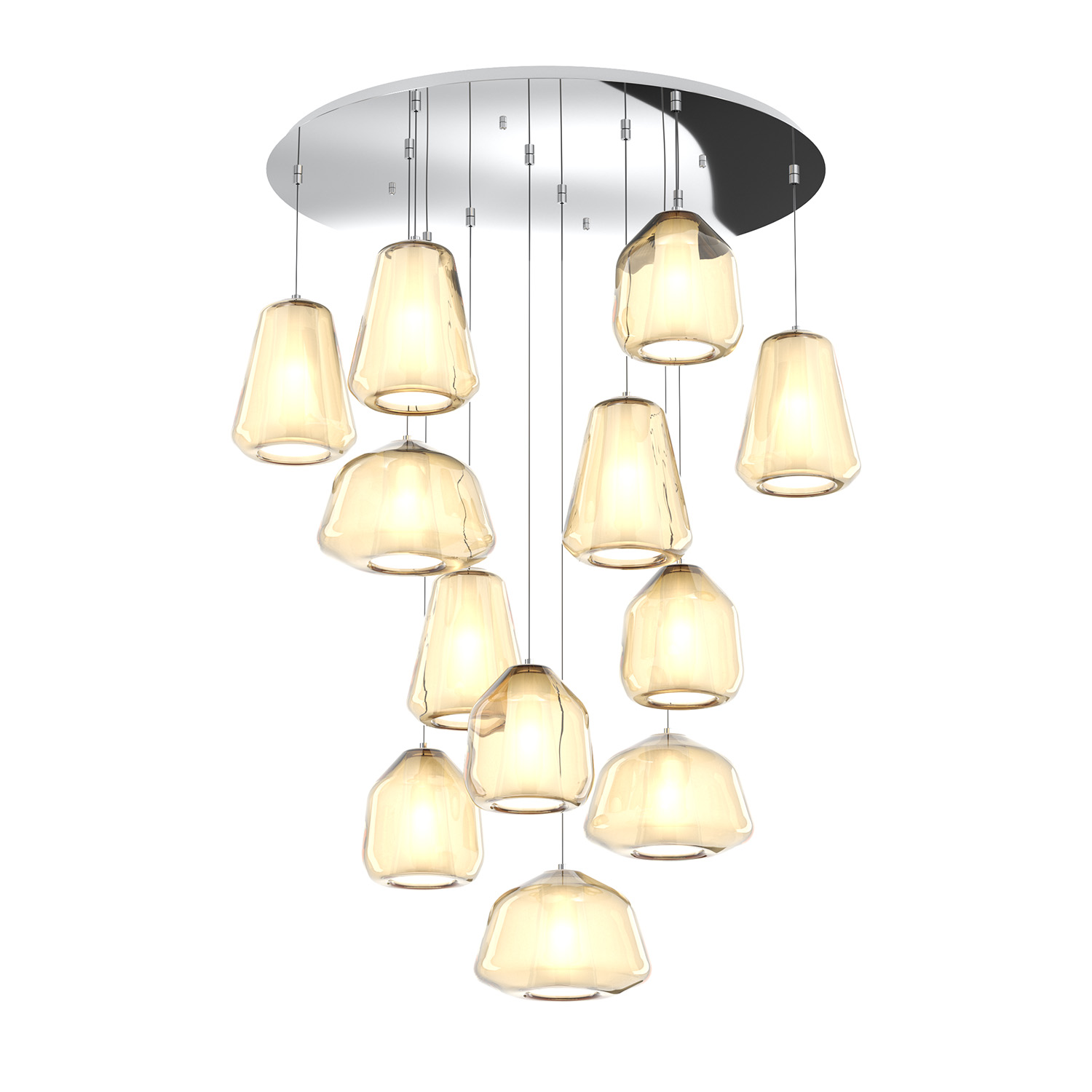 Sospensione Contemp Tonda Double Skin Metallo Cromo Vetro Mix Ambra 12 Luci E27