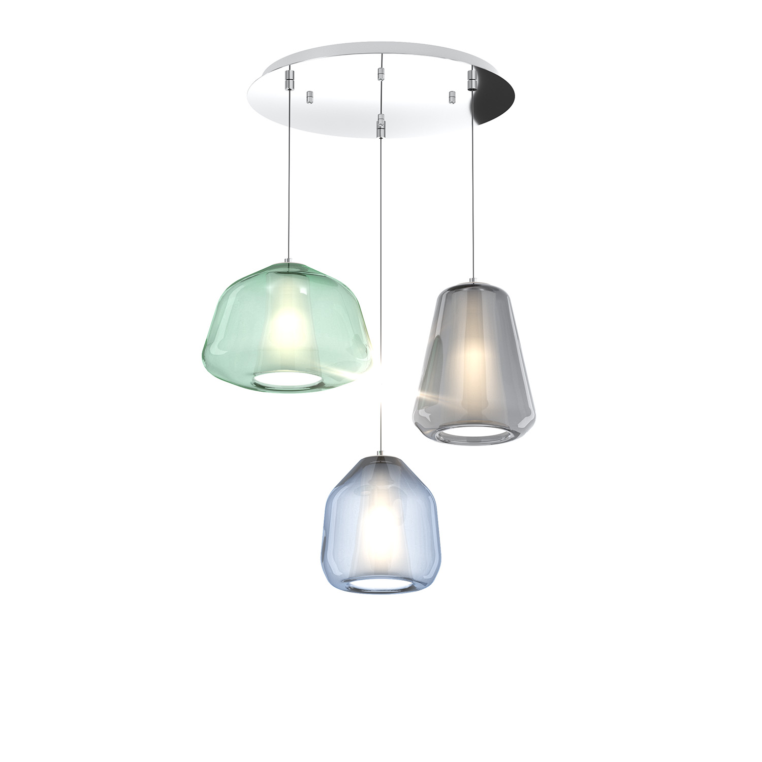 Sospensione Contemp Tonda Double Skin Metallo Cromo Vetro Mix Multicolor 3 Luci