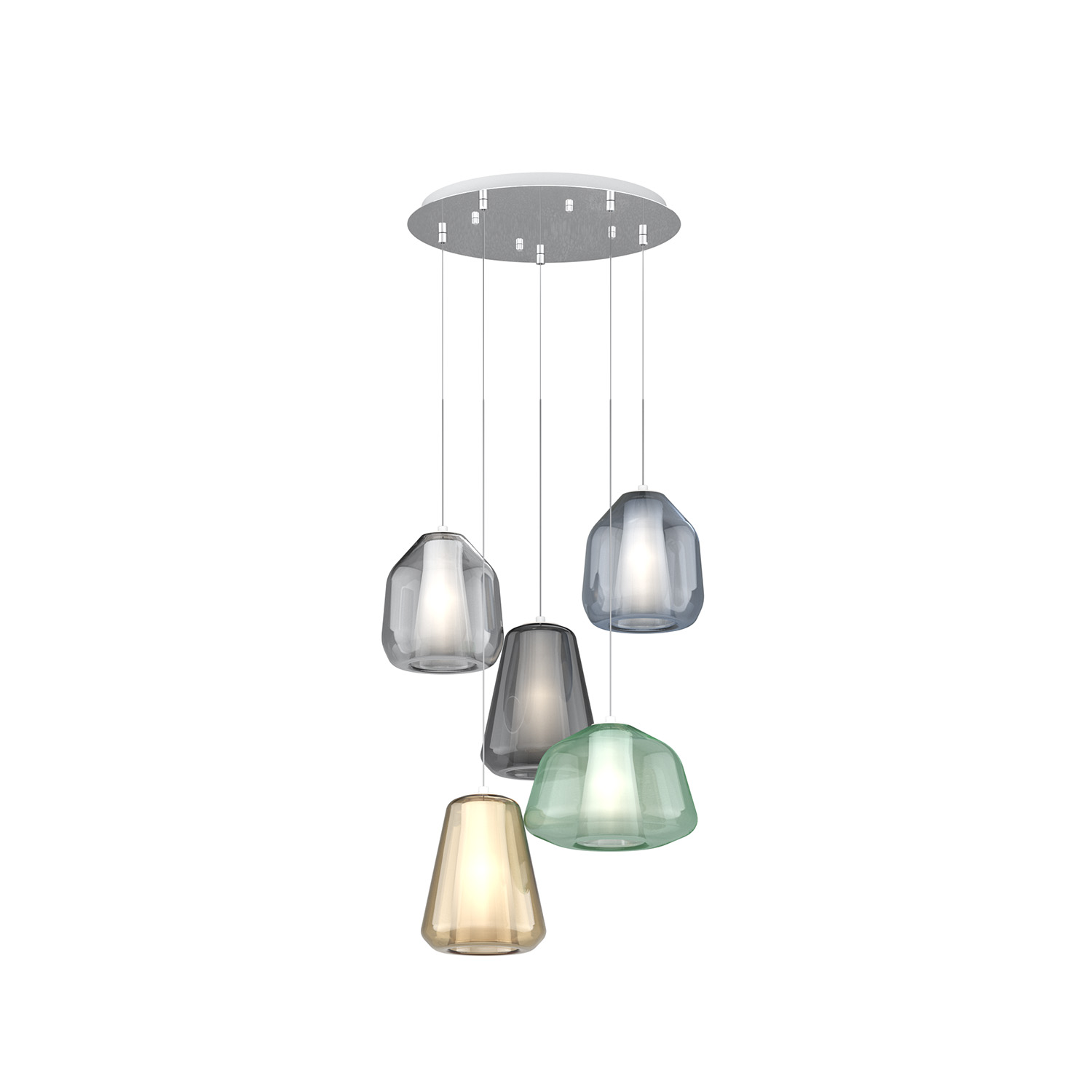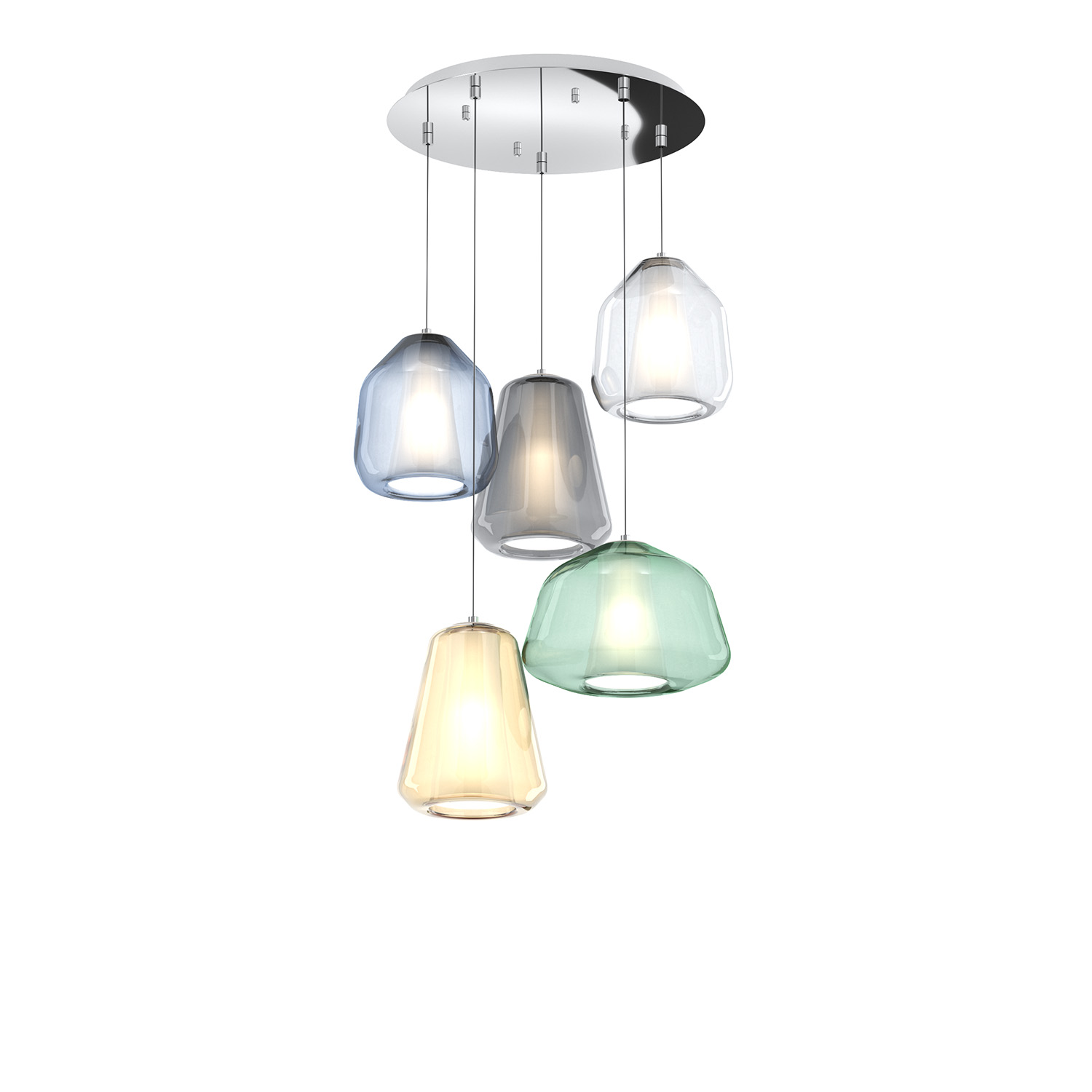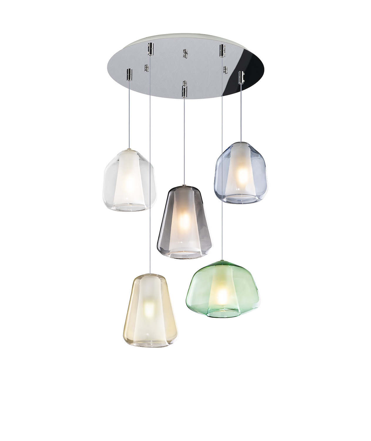 Sospensione Contemp Tonda Double Skin Metallo Cromo Vetro Mix Multicolor 5 Luci