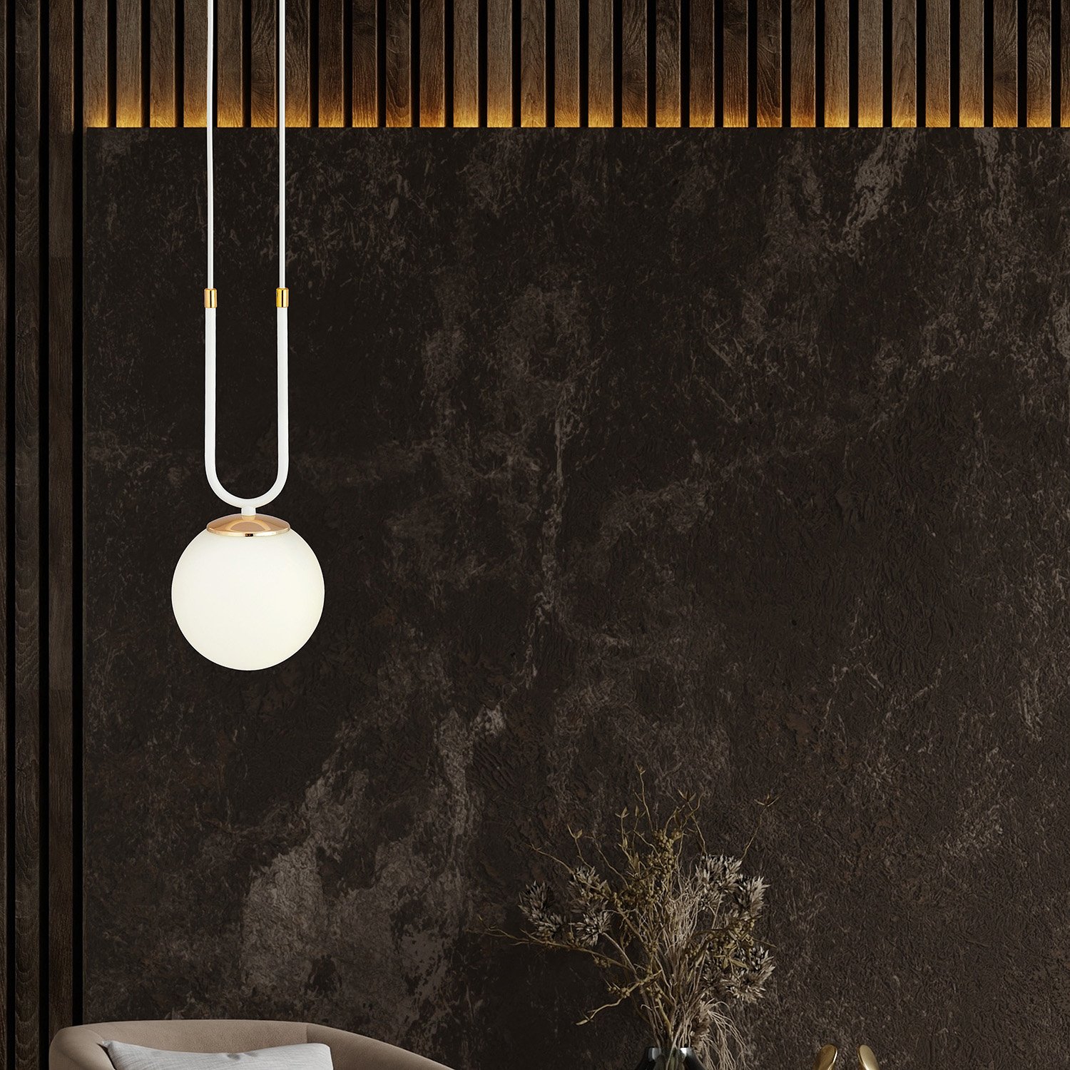 Sospensione Contemporanea 1 Luce Crio Acciaio Bianco Oro E Sfera Vetro Opalino