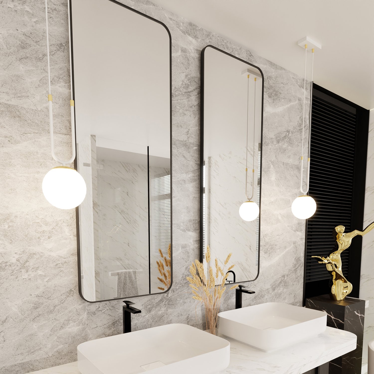 Sospensione moderna realizzata con base in metallo di colore bianco con dettagli decorativi in metallo color oro, diffusore sferico in vetro opalino. Aggiungono un'atmosfera straordinaria agli interni, presentandosi incredibilmente chic ed eleganti. Questa serie unica è progettata per gli appassionati di opulenza e bellezza. I paralumi in vetro donano alla serie GLAM un tocco di delicatezza e grazia, mentre gli elementi decorativi dorati la ravvivano e illuminano.