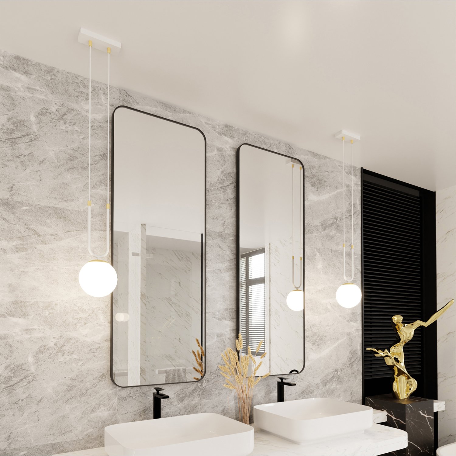 Sospensione contemporanea 1 luce Crio acciaio bianco oro e sfera vetro opalino emibig 1115/1