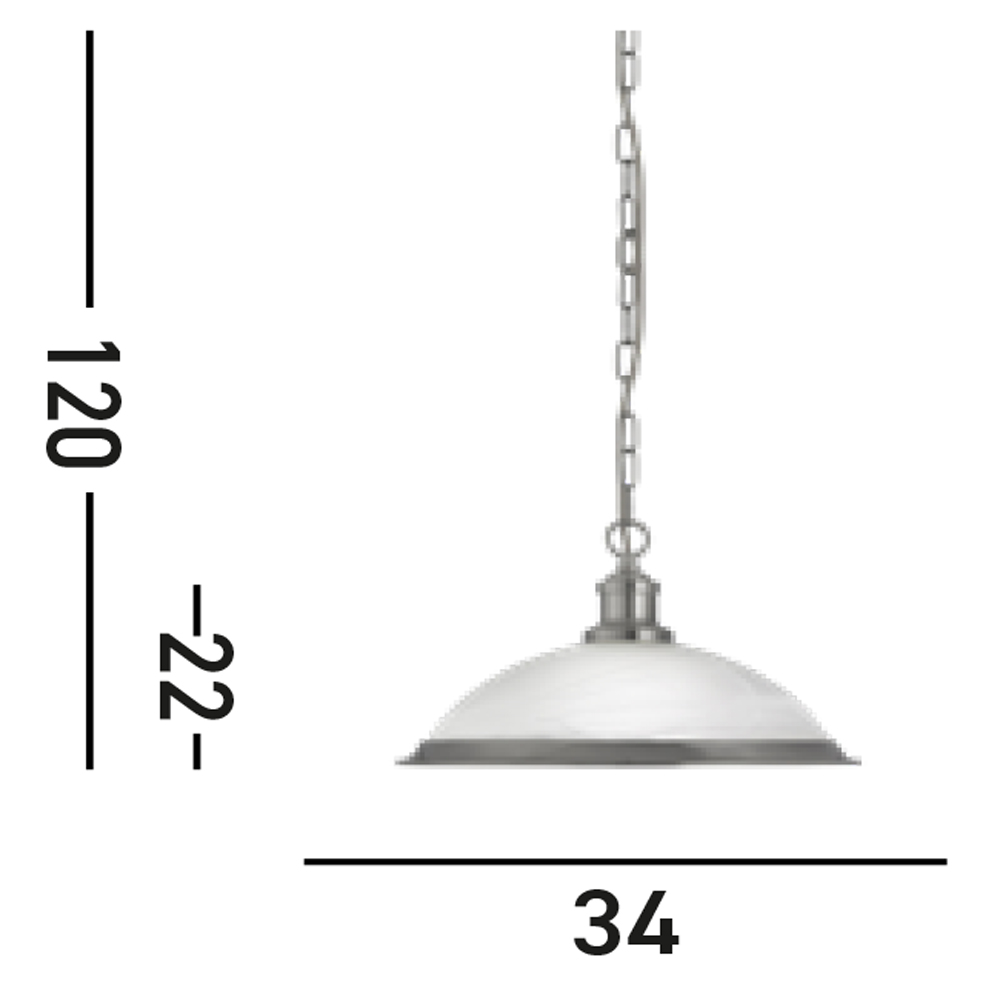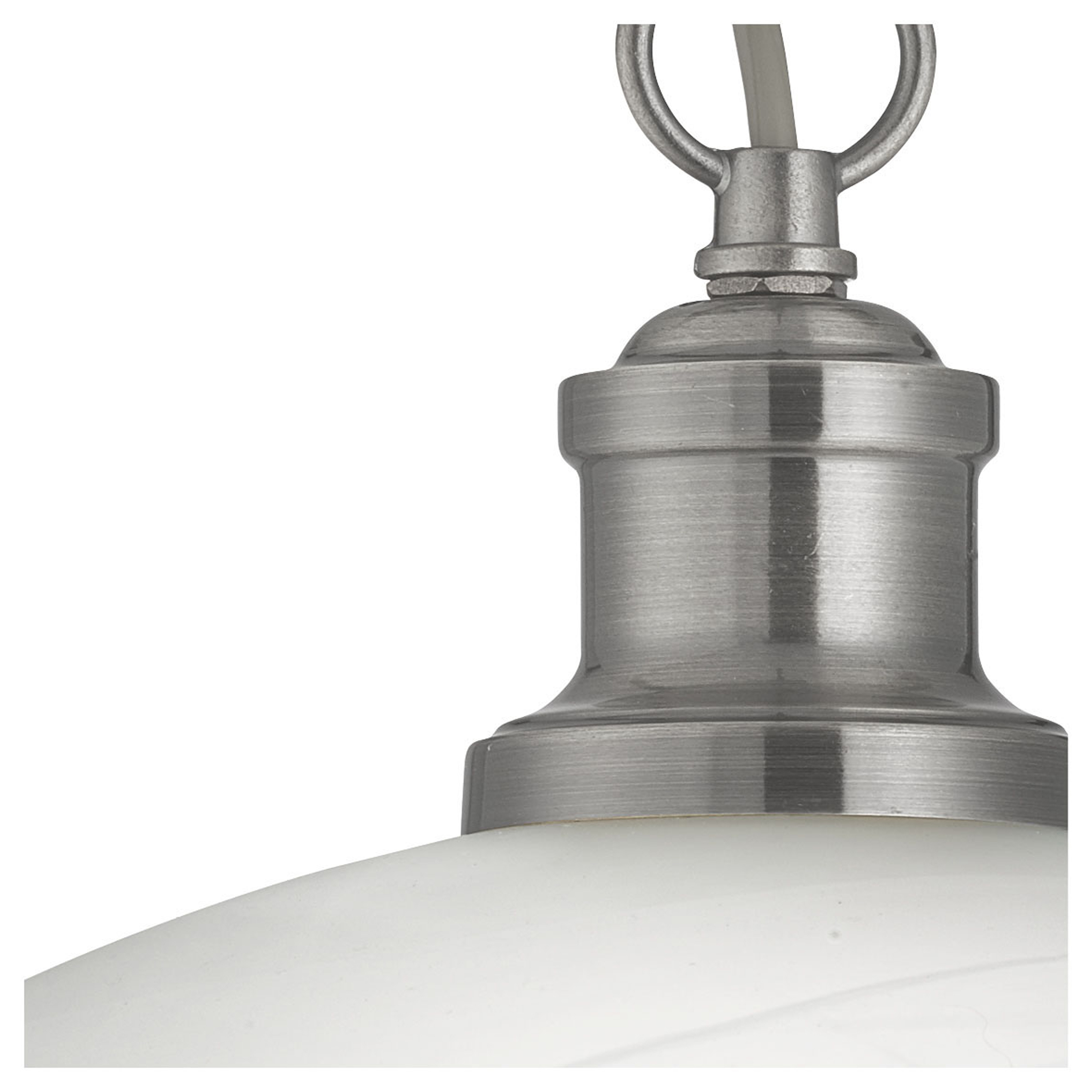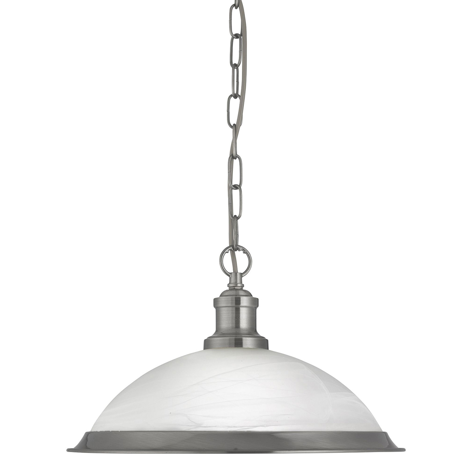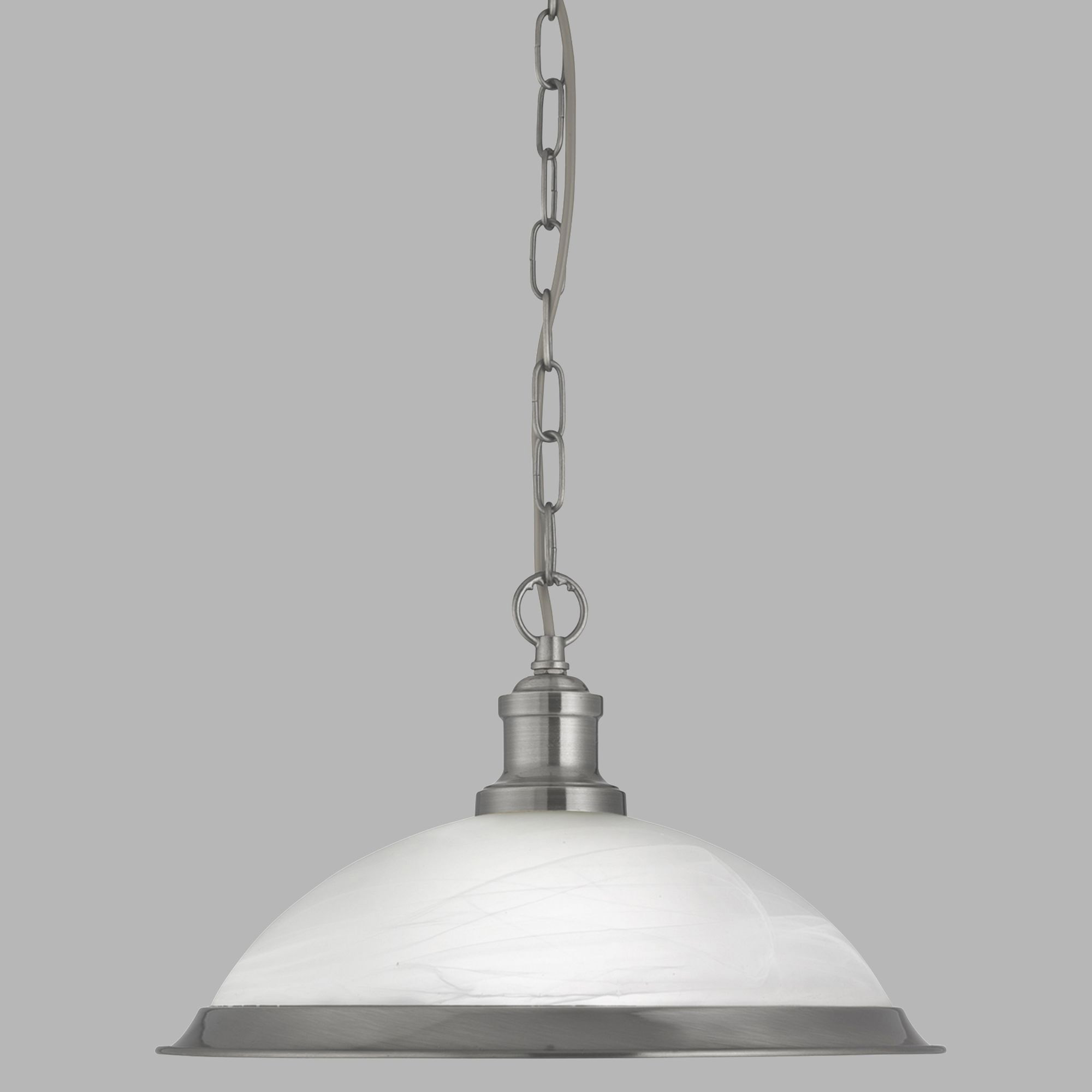Questa lampada a sospensione Bistro in argento satinato con paralume in vetro marmorizzato ha un aspetto semplicistico che aggiungerà un tocco retrò. Ricordando lo stile dei classici ristoranti e bistrot, la plafoniera è composta da un classico paralume art déco rifinito in un elegante argento satinato, con vetro acido per fornire effetti di luce puliti. Questa plafoniera dona uno stile distintivo ed elegante a qualsiasi ambiente e la catena può essere regolata per diverse altezze del soffitto.