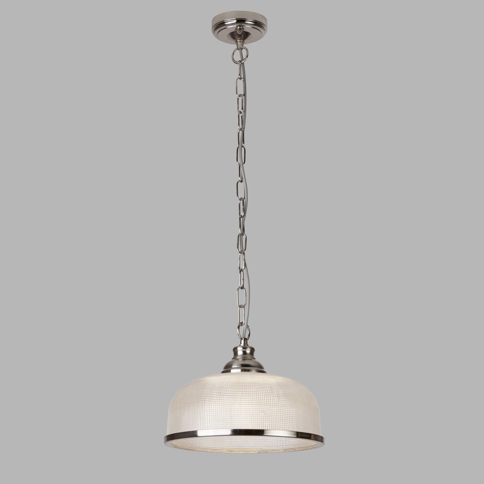 Dalla collezione Bistro II, questo pendente include un'attraente combinazione di argento satinato e vetro in stile olofano. Una robusta catena si trova sopra il paralume in vetro strutturato con effetto a coste, completo di finiture in argento satinato. La luce risplende attraverso il vetro olofano ed emette un bagliore caldo e soffuso.