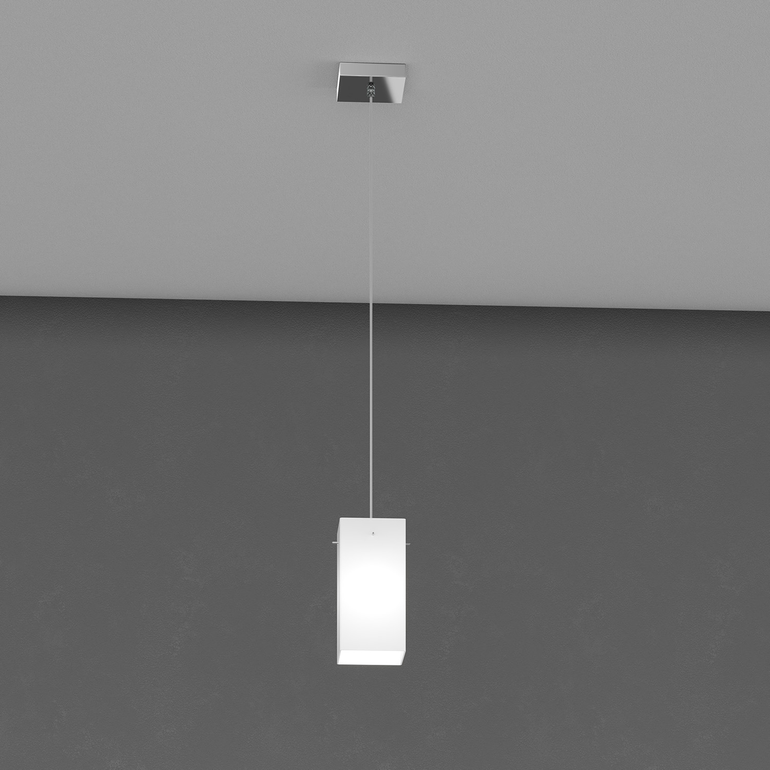 Sospensione con struttura metallica cromata costituite da un diffusore in vetro soffiato e acidato opaco di forma quadrata.. Ogni vetro misura 10cm per lato, è alto 20cm ed è fissato al supporto metallico cromato mediante dei perni filettati. Le sospensioni sono tutte regolabili in altezza mediante gli appositi serracavi.Questo articolo è disponibile in diverse finiture e/o dimensioni. E' possibile indicarlo nell'apposito campo NOTE presente in conclusione di ordine oppure contattarci dopo aver effettuato l'ordine.