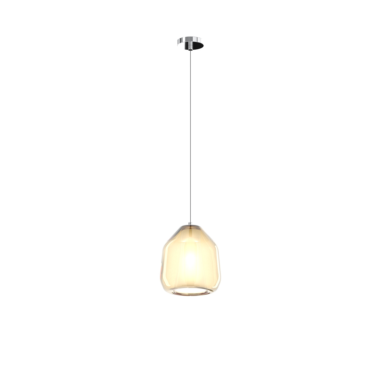 Collezione DOUBLE SKINLAMPADA DALLA DOPPIA ANIMASospensione 1 luce composta da una struttura in metallo color cromo e un diffusore in vetro pirex soffiato colore amb..