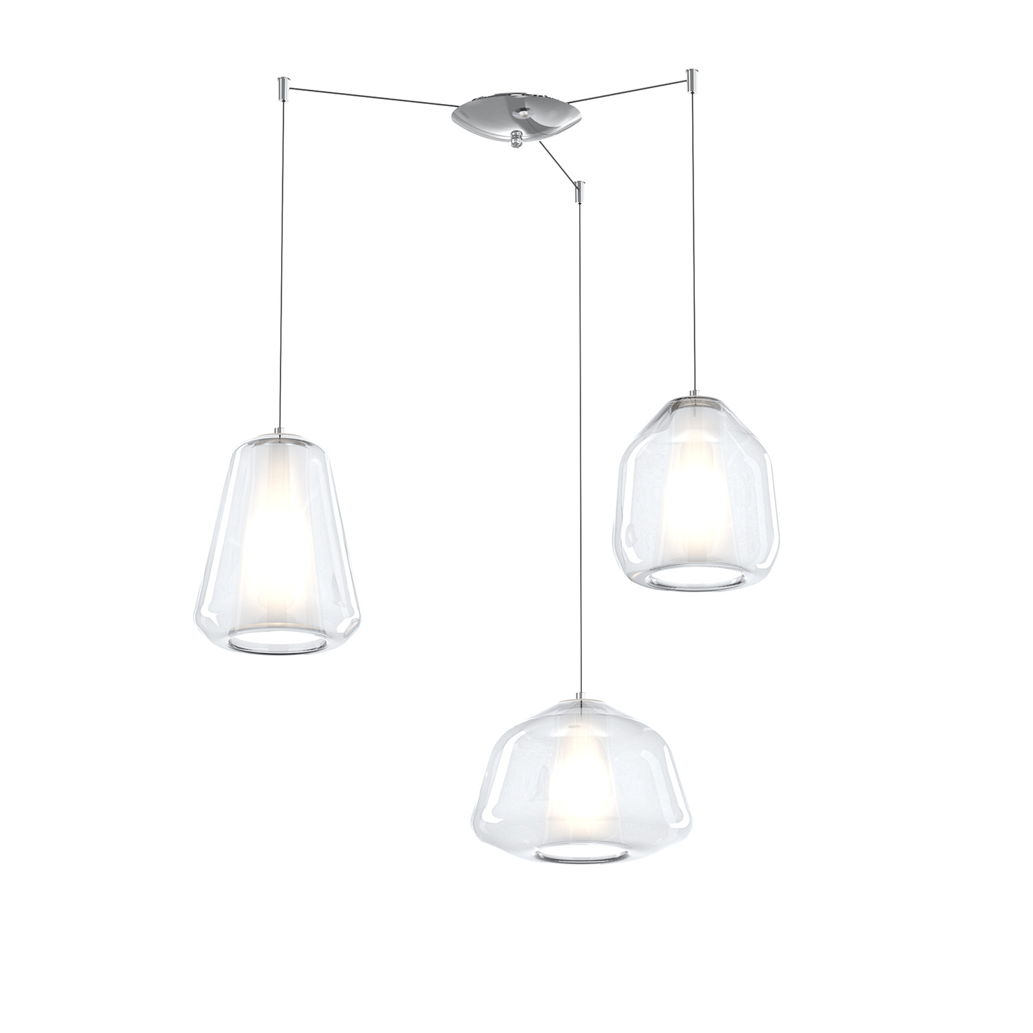 Sospensione Contemporanea Double Skin Metallo Cromo Vetro Mix Trasp. 3 Luci E27
