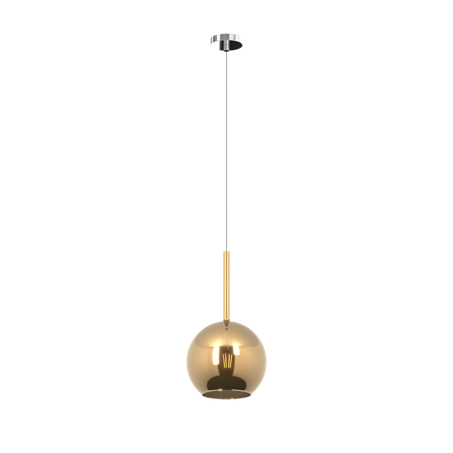 Sospensione 1 luce con struttura in metallo finitura cromo e dal vetro medio in finitura oro.. Le finiture dei vetri cromo, rame, oro e ambra sono trattamenti superficiali che riducono solo parzialmente l'emissione luminosa. La finitura trasparente può essere naturalmente abbinata alle altre. Le strutture in metallo sono disponibili nelle finiture cromo, bianco e ottone satinato, con il diffusore in vetro disponibile in tutte le finiture esistenti.Possibilità di creare una composizione componibile in base ai componenti della sospensione scelti.Questo articolo è disponibile in diverse finiture e/o dimensioni. E' possibile indicarlo nell'apposito campo NOTE presente in conclusione di ordine oppure contattarci dopo aver effettuato l'ordine.