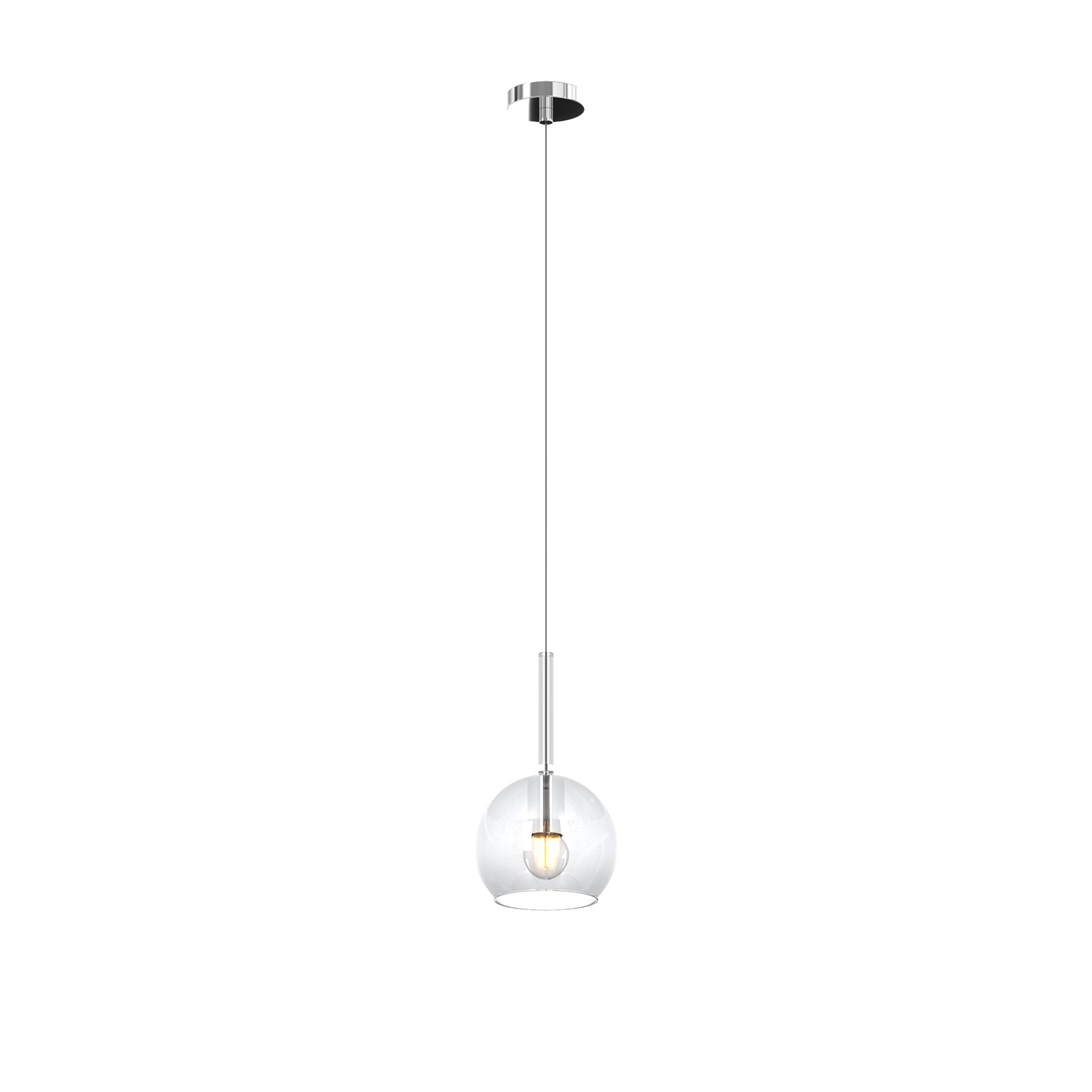 Sospensione 1 luce con struttura in metallo finitura cromo e dal vetro piccolo in finitura trasparente.. Le finiture dei vetri cromo, rame, oro e ambra sono trattamenti superficiali che riducono solo parzialmente l'emissione luminosa. La finitura trasparente può essere naturalmente abbinata alle altre. Le strutture in metallo sono disponibili nelle finiture cromo, bianco e ottone satinato, con il diffusore in vetro disponibile in tutte le finiture esistenti.Possibilità di creare una composizione componibile in base ai componenti della sospensione scelti.Questo articolo è disponibile in diverse finiture e/o dimensioni. E' possibile indicarlo nell'apposito campo NOTE presente in conclusione di ordine oppure contattarci dopo aver effettuato l'ordine.