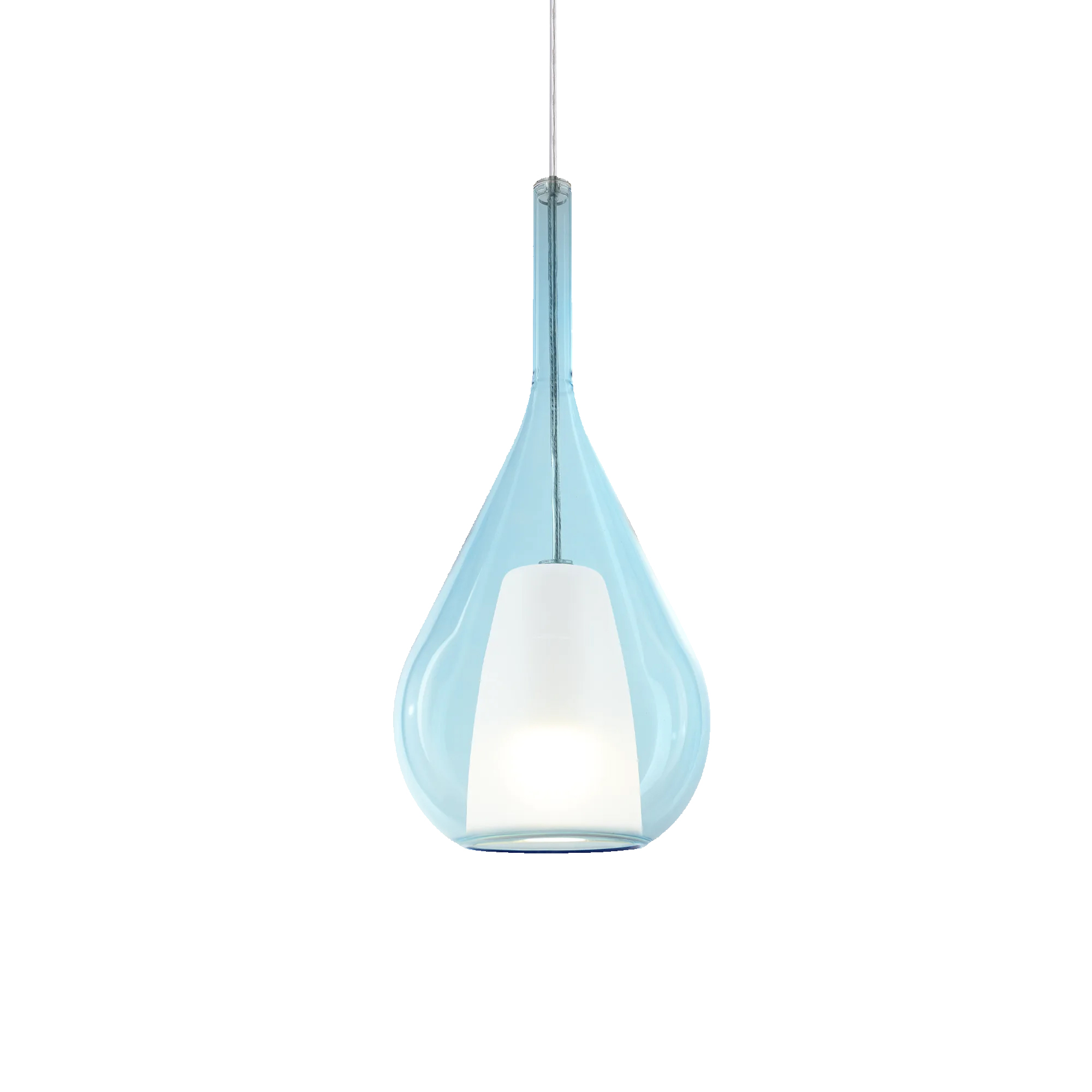 Sospensione Contemporanea Kalique Vetro Azzurro Bianco E Cromo 1 Luce E27 H53Cm