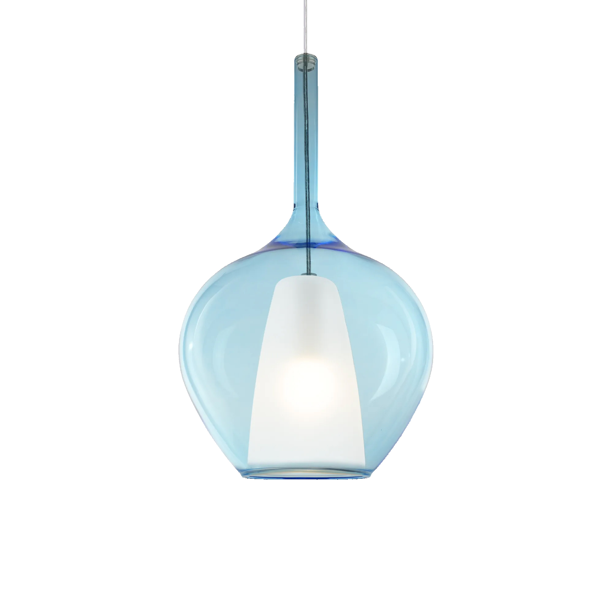 Sospensione Contemporanea Kalique Vetro Azzurro Bianco E Cromo 1 Luce E27 H36Cm