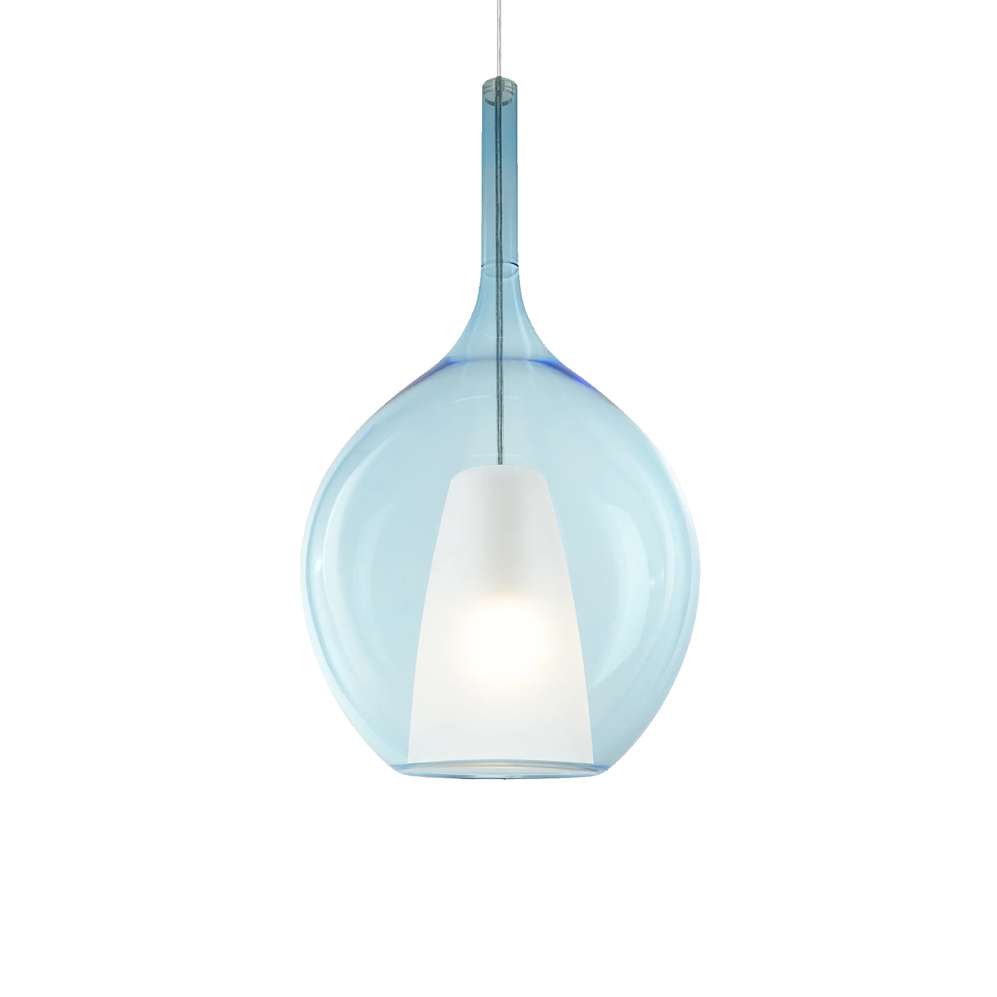 Sospensione Contemporanea Kalique Vetro Azzurro Bianco E Cromo 1 Luce E27 H59Cm