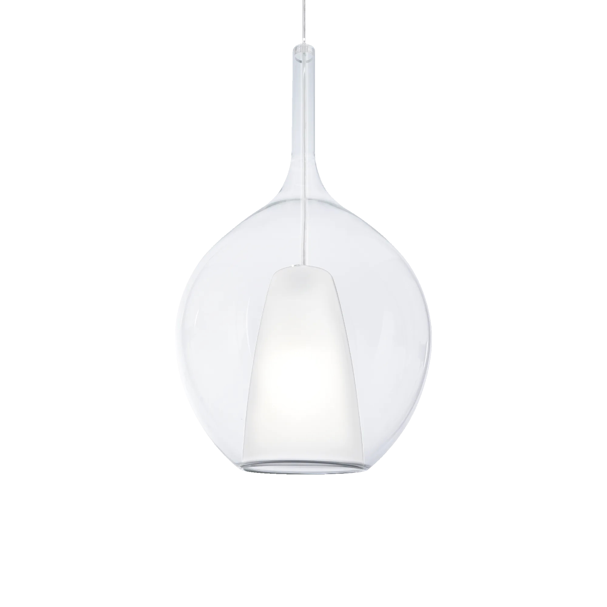 Sospensione Contemporanea Kalique Vetro Trasparente Bianco E Cromo E27 H36Cm