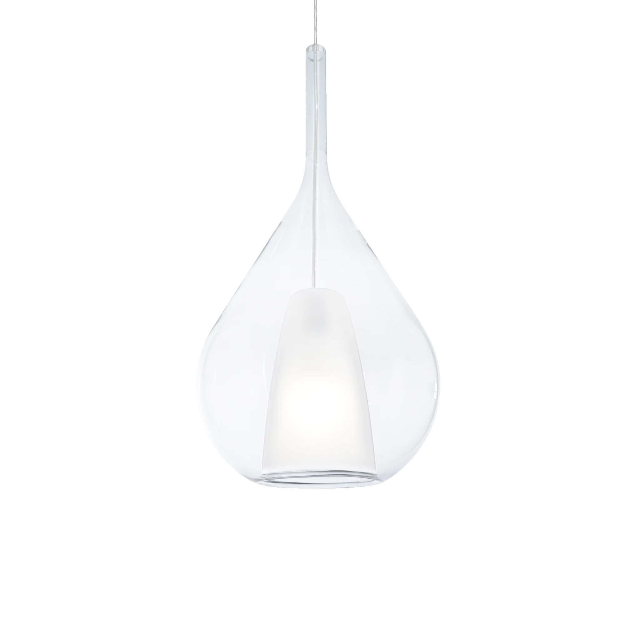 Sospensione Contemporanea Kalique Vetro Trasparente Bianco E Cromo E27 H40Cm
