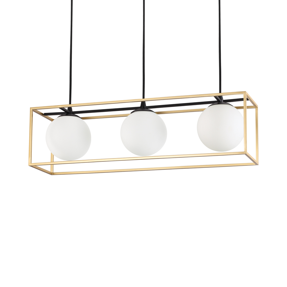 Collezione LINGOTTOLUCE INCORNICIATASospensione a 3 luci con montatura in metallo verniciato: base nera opaca e telaio ottone opaco. Diffusori in vetro incamiciato b..