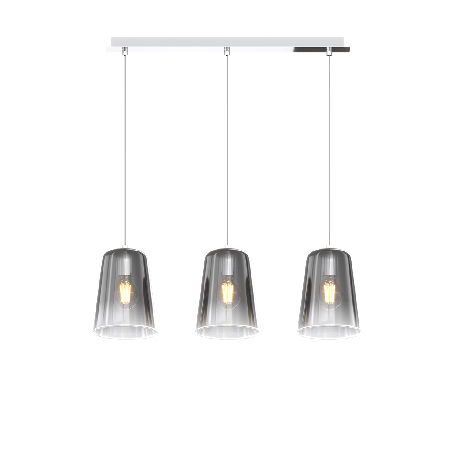 Sospensione Contemporanea Rett. Shaded Metallo E Vetro Cromo 3 Luci E27