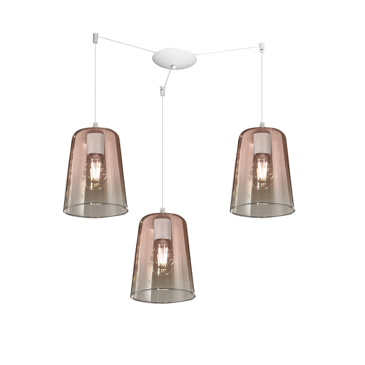 Sospensione Contemporanea Shaded Metallo Bianco Vetro Rame 3 Luci E27
