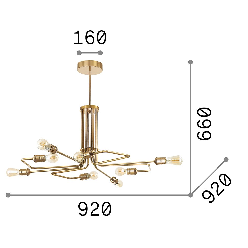 Collezione TRIUMPHOTTONE INVECCHIATO PER IL TUO LIVINGPlafoniera a 8 luci con montatura interamente in metallo con finitura ottone invecchiato....