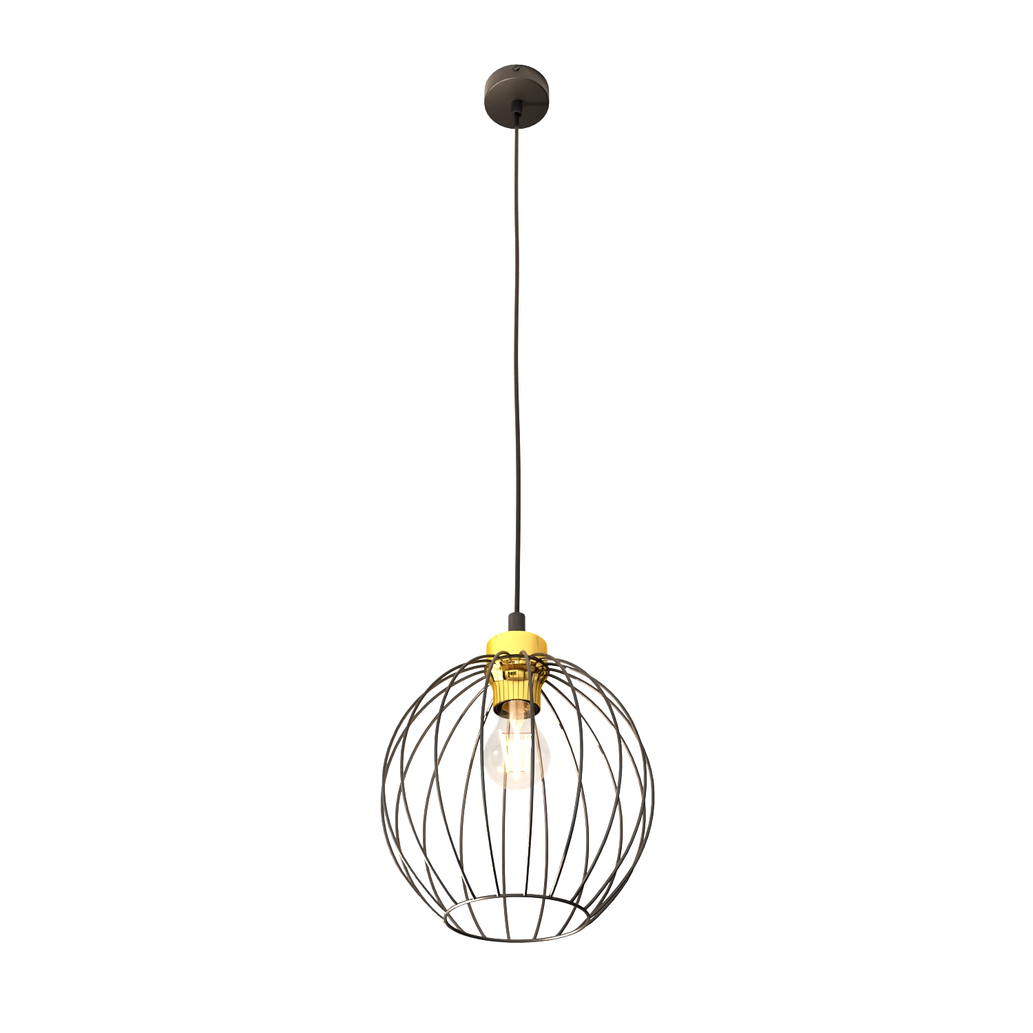 Sospensione 1 luce E27 in acciaio verniciato a polvere effetto gabbia con dettagli oro e altezza regolabile. La lampada a sospensione Hator è realizzata in solido acciaio, che le conferisce un carattere grezzo e industriale. I paralumi in filo metallico creano interessanti effetti luminosi, doHator originalità agli interni. È ideale per il soggiorno, la sala da pranzo e la cucina, portando in casa uno stile loft unico.