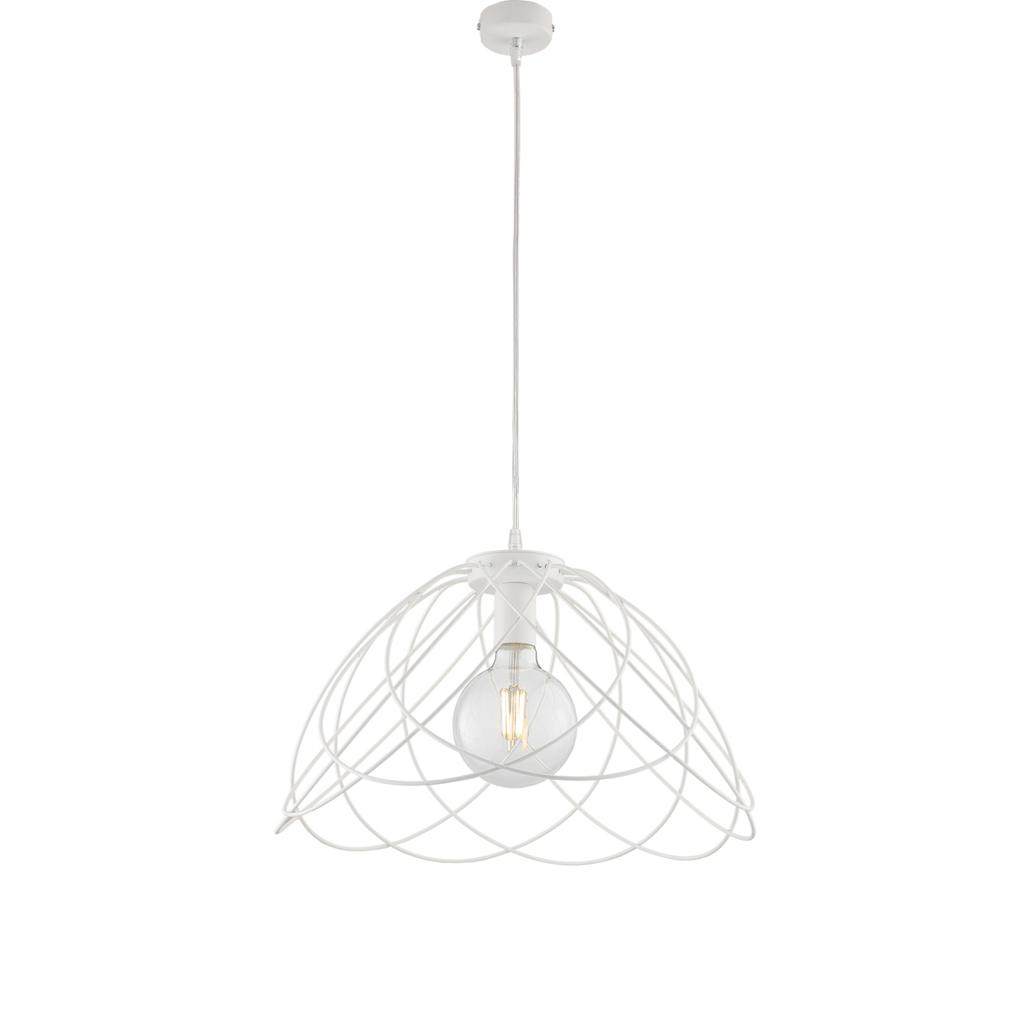 Sospensione a 1 luce in ferro laccato con decorazione bianco shabby.. La struttura a cesto, composta da fili di ferro disposti a formare una gabbia, crea un design visivamente interessante e leggero. Questo tipo di sospensione si ispira allo stile industriale, con un tocco di rusticità e vintage, perfetto per ambienti moderni e loft. Il ferro è l'unico materiale e conferisce durabilità e robustezza. Sopra l'isola o il tavolo da pranzo, queste lampade offrono un'illuminazione funzionale e stilosa. Disponibile in diverse finiture.