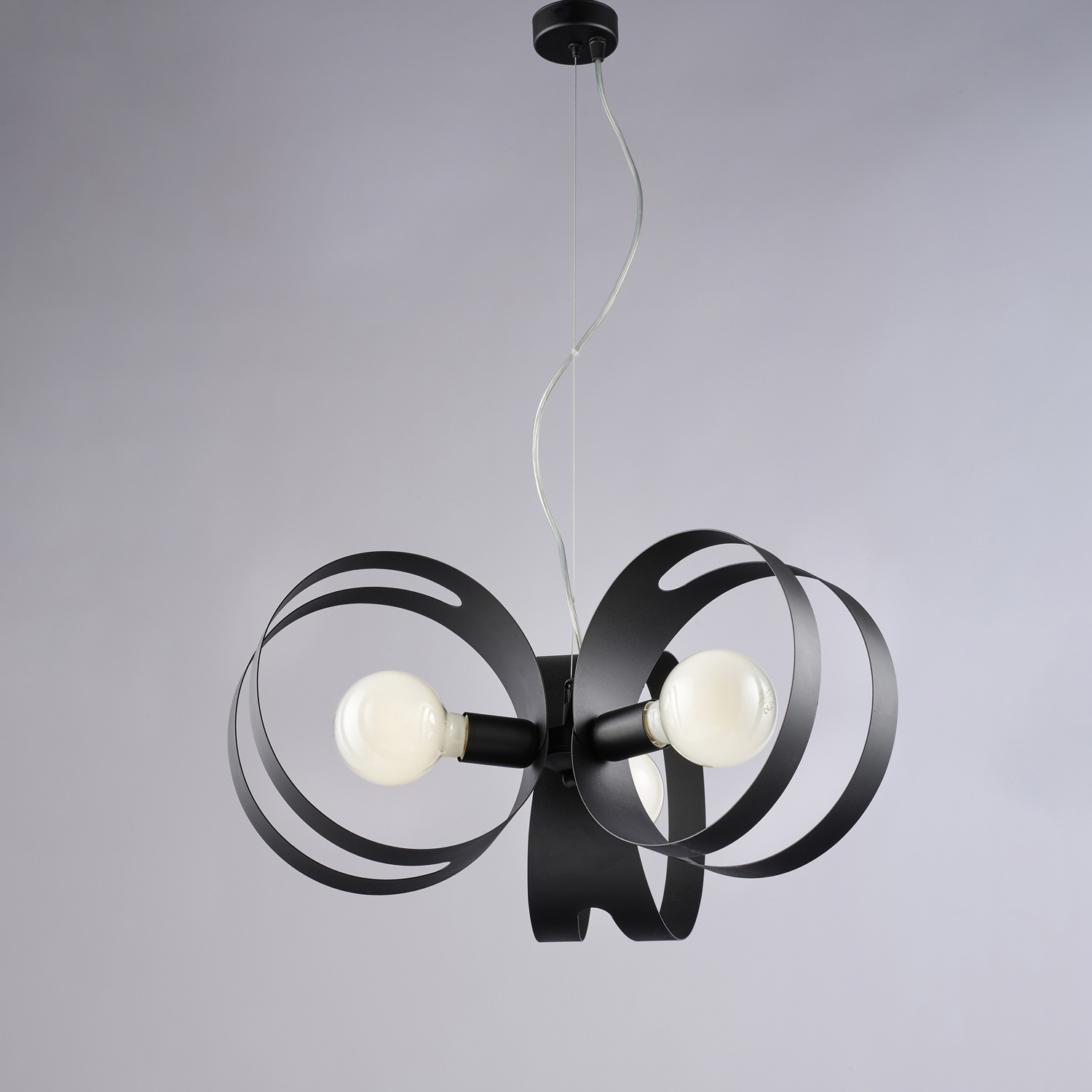 Sospensione moderna 3 luci realizzata con 3 diffusori taglio laser in ferro laccato colore nero.. I diffusori creano giochi di luce interessanti, migliorando l'estetica e l'atmosfera dell'ambiente. Il cavo regolabile permette di adattare l’altezza della lampada in base alle esigenze specifiche dell’ambiente, ideale per soffitti di varie altezze. Modello che combina ferro laccato e design moderni, per fornire un'illuminazione che ben si integra in spazi dalle linee pulite e minimaliste. Disponibile in diverse finiture.