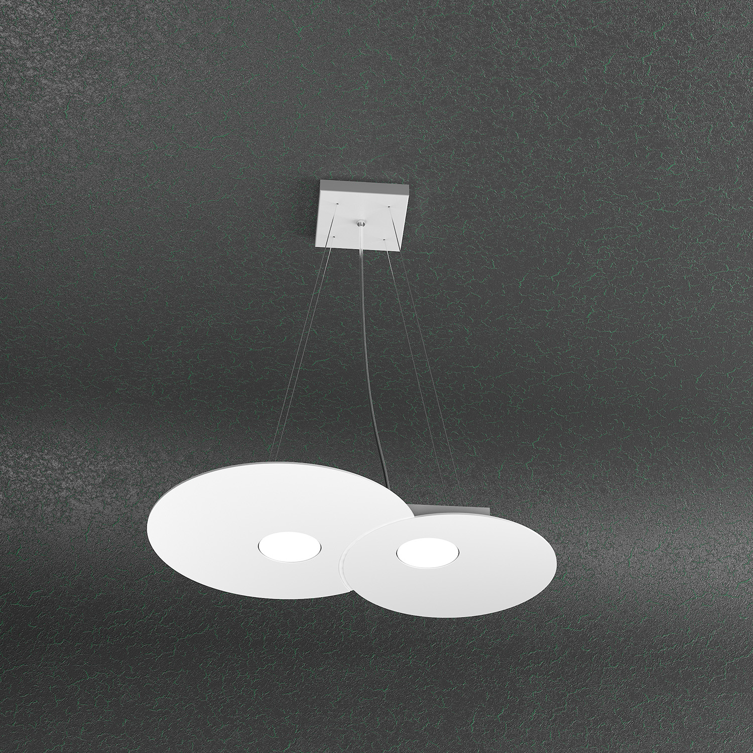 Sospensione di finitura bianca con lastre quadrate di metallo con lavorazioni di fresatura che creano giochi di cerchi sovrapposti.. Il punto di forza del prodotto consiste nel non utilizzare dei led integrati ma una lampadina Gx53 che, una volta montata, arriva a filo della lastra metallica e può essere facilmente sostituita dall’esterno.Questo articolo è disponibile in diverse finiture e/o dimensioni. E' possibile indicarlo nell'apposito campo NOTE presente in conclusione di ordine oppure contattarci dopo aver effettuato l'ordine.