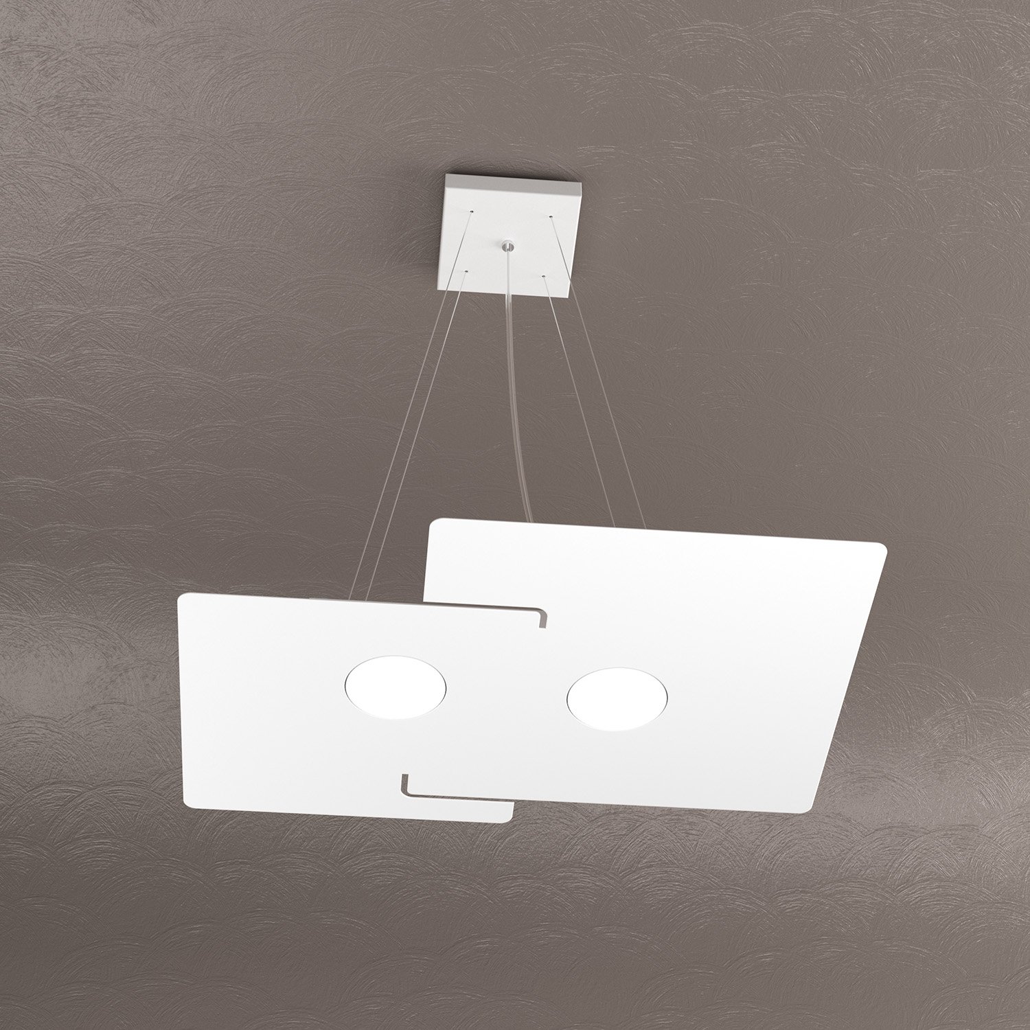 Collezione ECHOLAMPADE CHE SI FONDONO CON LO SPAZIOSospensione 2 luci realizzata con lastre quadrate in metallo verniciato bianco in diverse forme.. Queste lampade h..