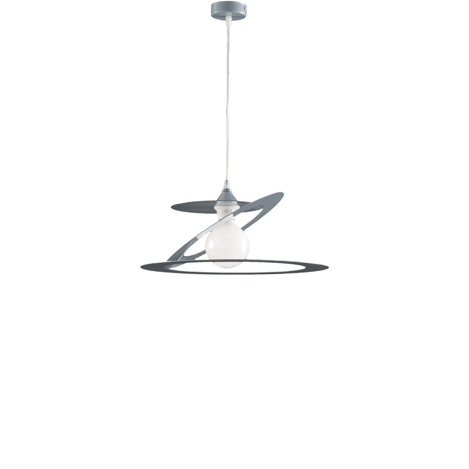 Collezione GekoFORME ASTRATTE PER CHI AMA OSARESospensione moderna 1 luce con diffusore in ferro laccato grigio dalla forma astratta grazie al taglio laser.. Rosone ..