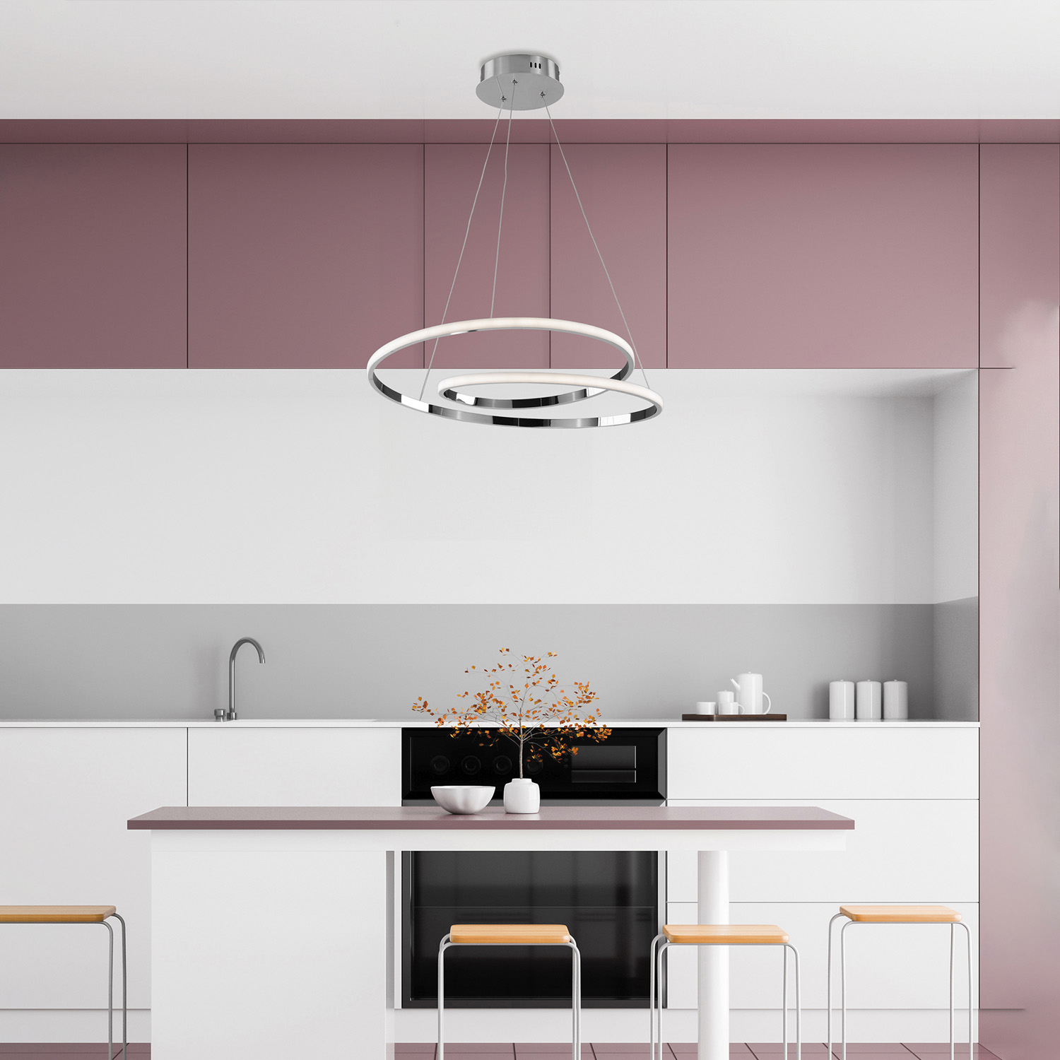 Sospensione moderna con struttura in metallo e alluminio cromo lucido con led integrato e diffusore in gomma opale. Disponibile anche nella variante bianco.. Il diffusore in gomma opale, un materiale flessibile e resistente, diffonde la luce in modo morbido e uniforme. Questo materiale aiuta a ridurre l'abbagliamento e a creare un'illuminazione diffusa e piacevole. Luci LED integrate 60 watt, luce naturale 4500K, offrono un'illuminazione efficiente dal punto di vista energetico, con una lunga durata e un basso consumo energetico. I LED sono infatti noti per la loro affidabilità e per la qualità della luce emessa. Una soluzione ideale per chi cerca un'illuminazione contemporanea che non solo illumini, ma anche valorizzi l'ambiente con un tocco di stile moderno.