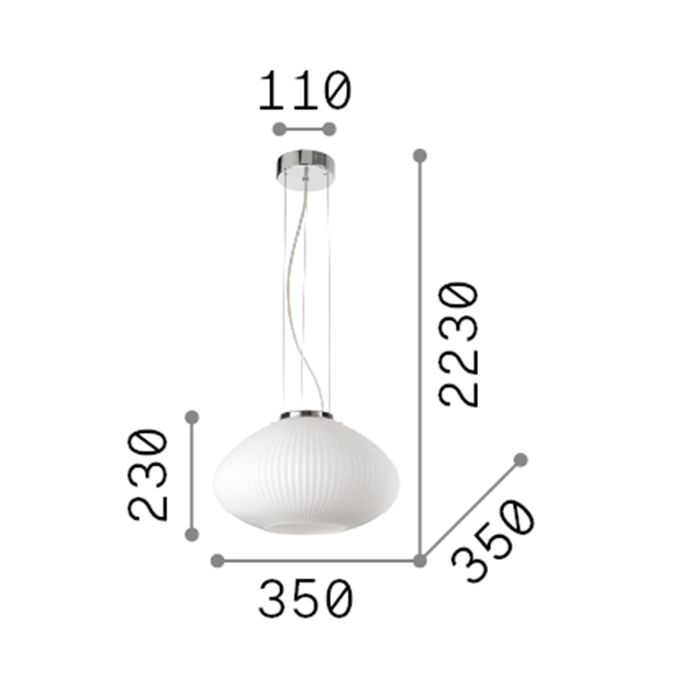 Collezione PLISSE'VETRO SOFFIATO BIANCO PER UN DESIGN COOLSospensione moderna con montatura in metallo placcato cromo. Diffusore in vetro soffiato bianco, con decoro..