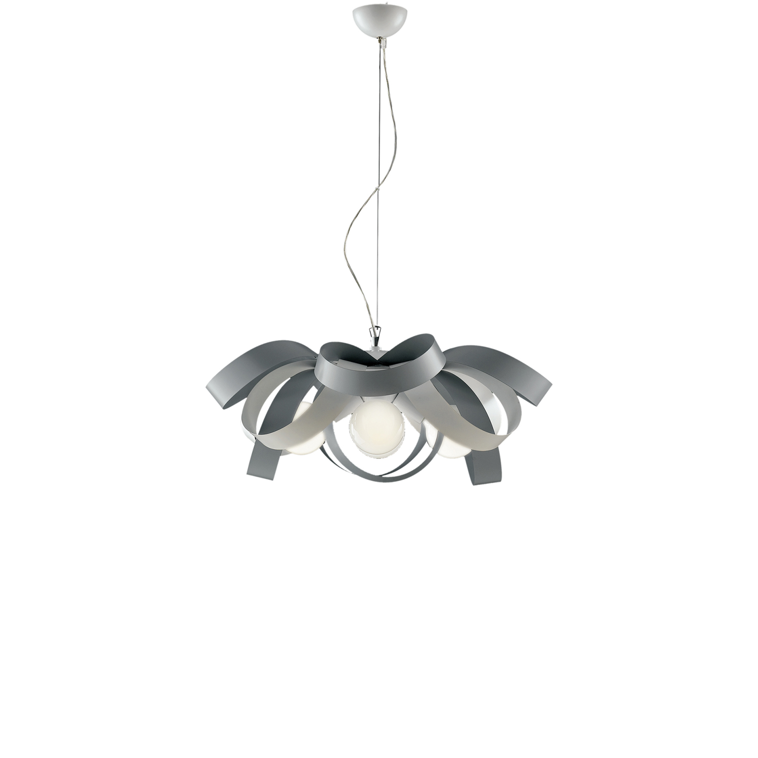 Sospensione Moderna Primula 4 Luci In Ferro Laccato Bianco E Grigio