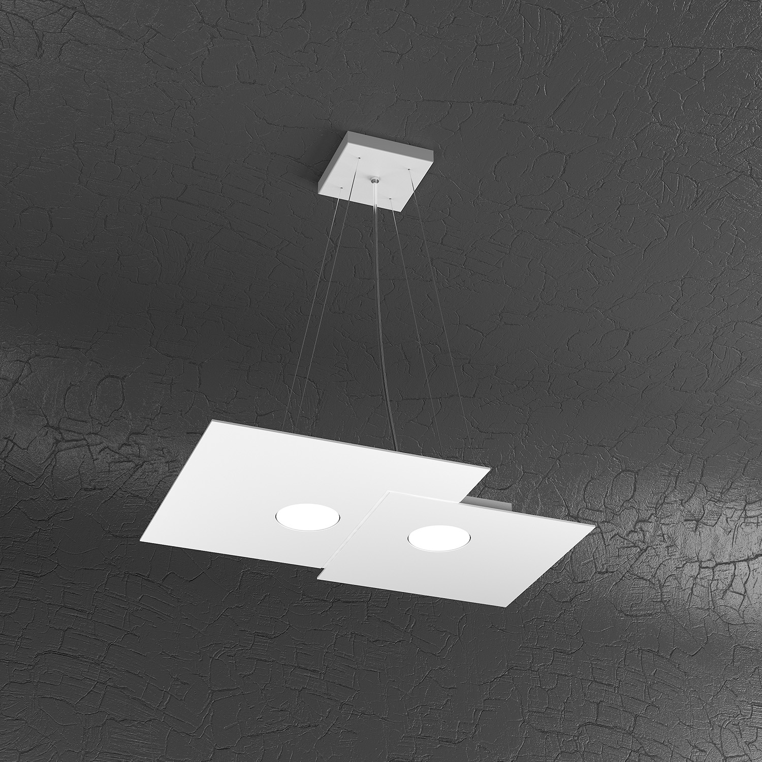 Sospensione Moderna Rettangolare Plate Metallo Bianco 2 Luci Gx53