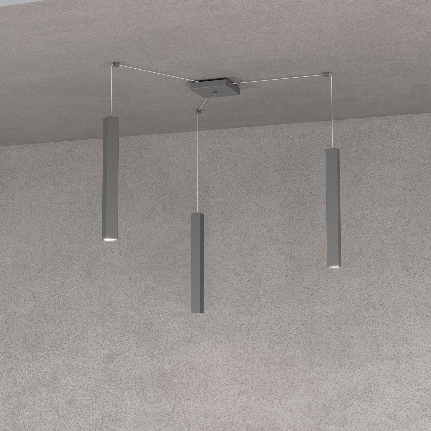 Sospensione Moderna Square Tube Metallo Grigio 3 Luci Gu10