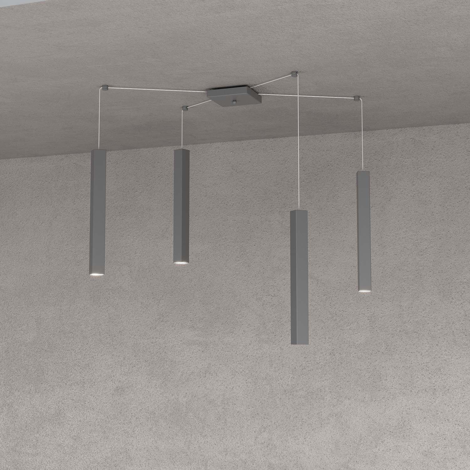 Sospensione Moderna Square Tube Metallo Grigio 4 Luci Gu10