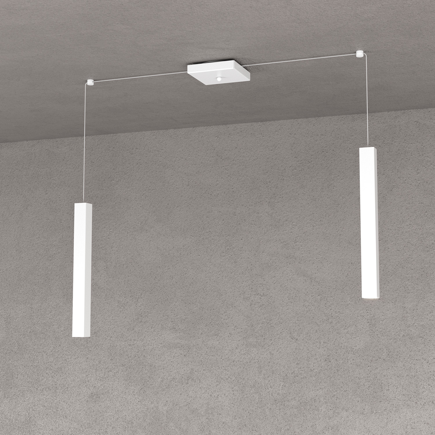 Sospensione Moderna Square Tube Metallo Bianco 2 Luci Gu10