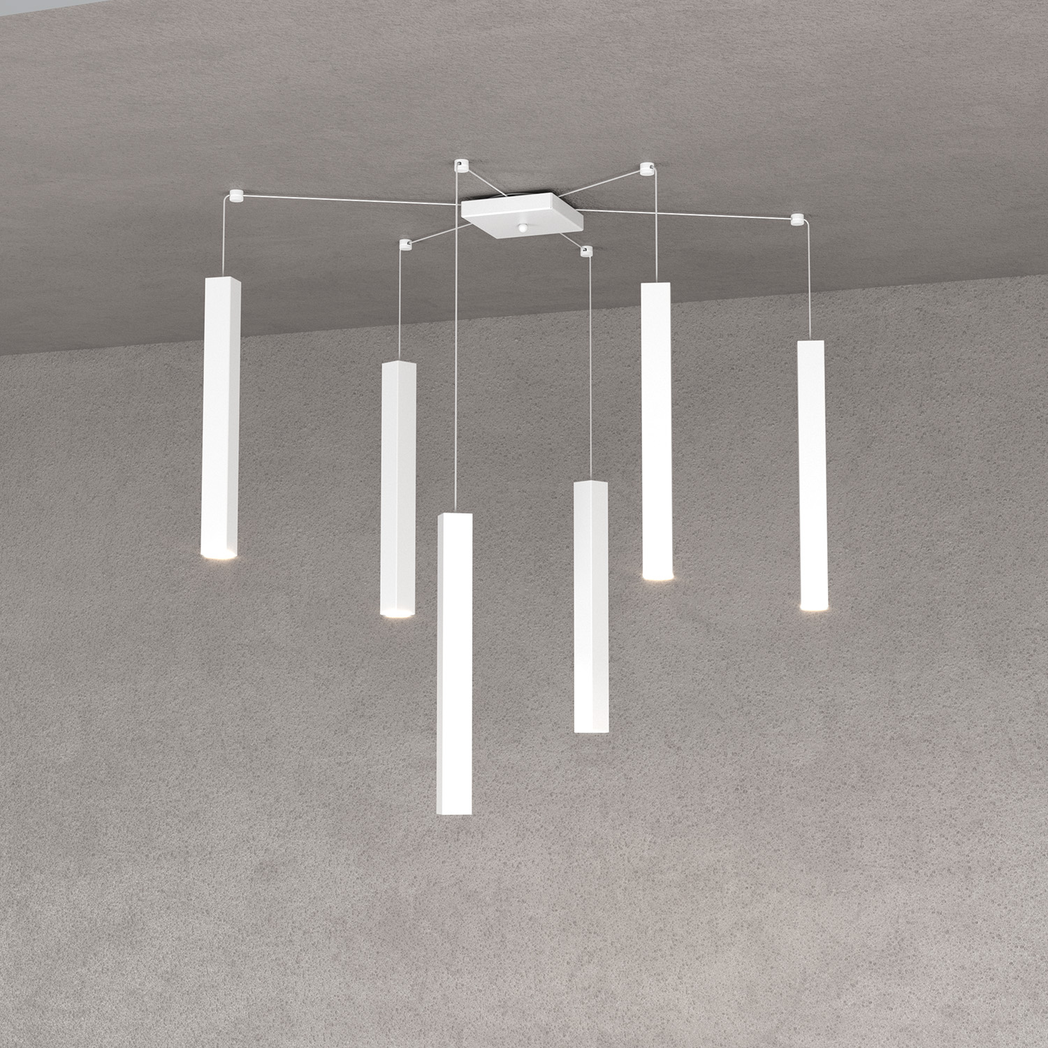 Sospensione Moderna Square Tube Metallo Bianco 6 Luci Gu10